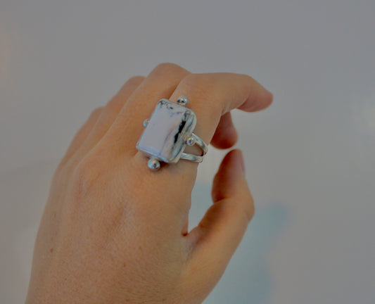 Size 8 White Buffalo Turquoise Curb Chain Ring