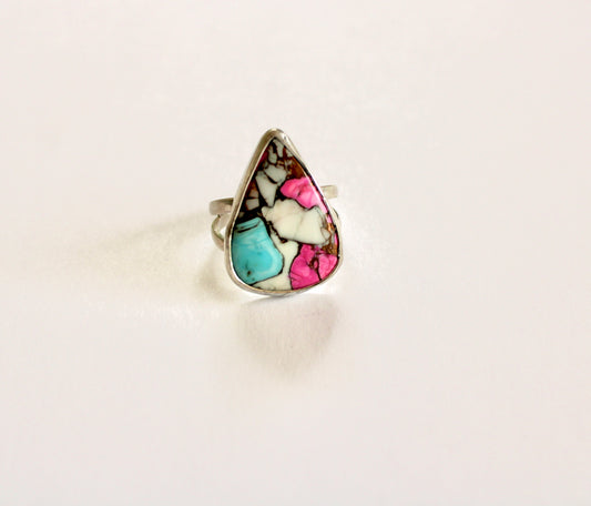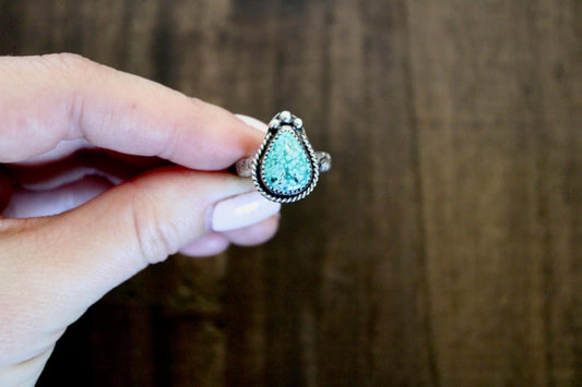 Size 7.5-Cactus Turquoise Sterling Silver Statement Ring