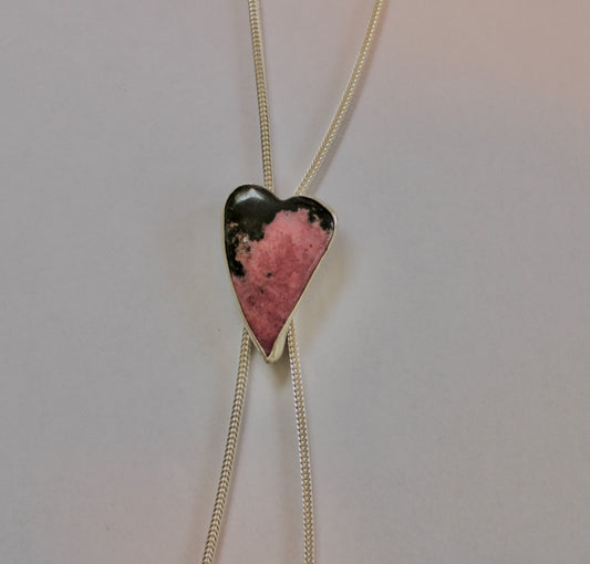 Pink Rhodonite Heart Bolo Necklace