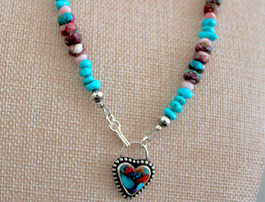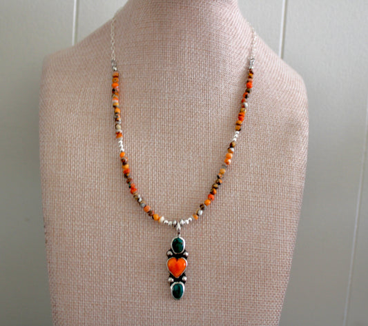 Spiny Oyster and Kingman Trio on Spiny Oyster Beaded Necklace