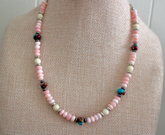 Pink Opal beaded necklace with Pink Dahlia Kingman