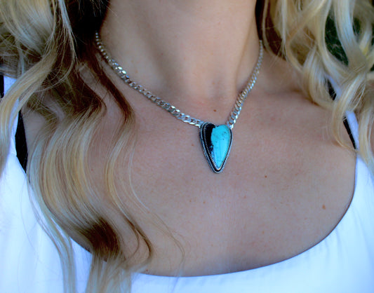 Sold outTurquoise Heart Curb Chain Necklace