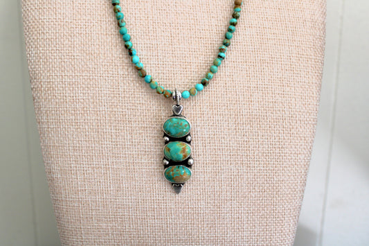 Royston Turquoise Trio Pendant on a Kingman Turquoise Beaded chain
