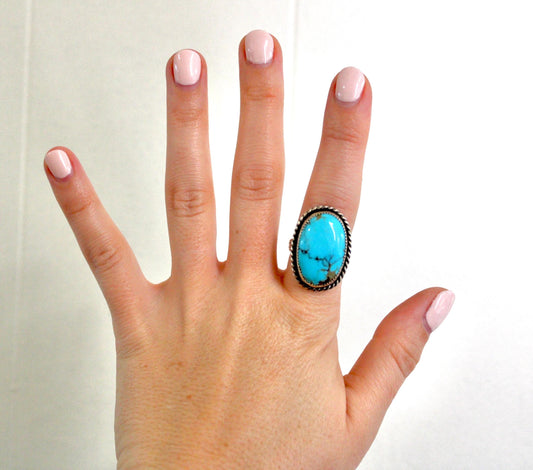 Size 8 -Sterling Silver Kingman Turquoise Ring