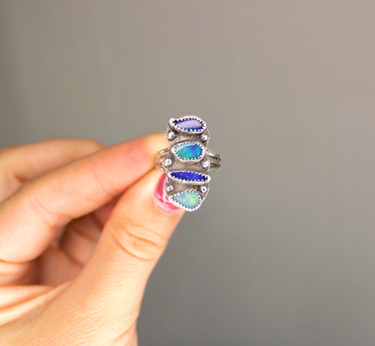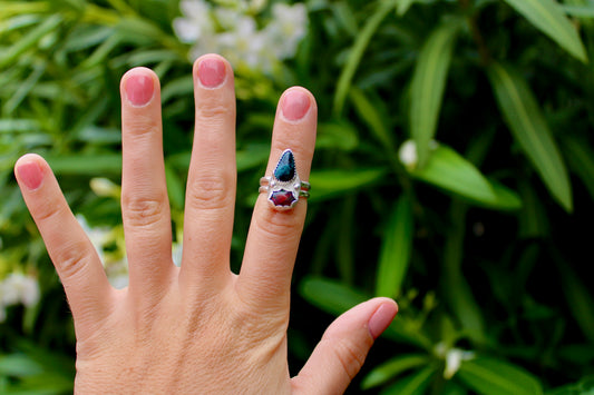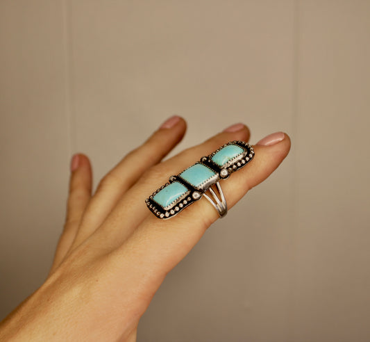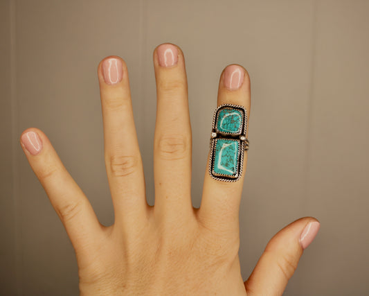 Size 7.5 -Sterling Silver double Turquoise Ring
