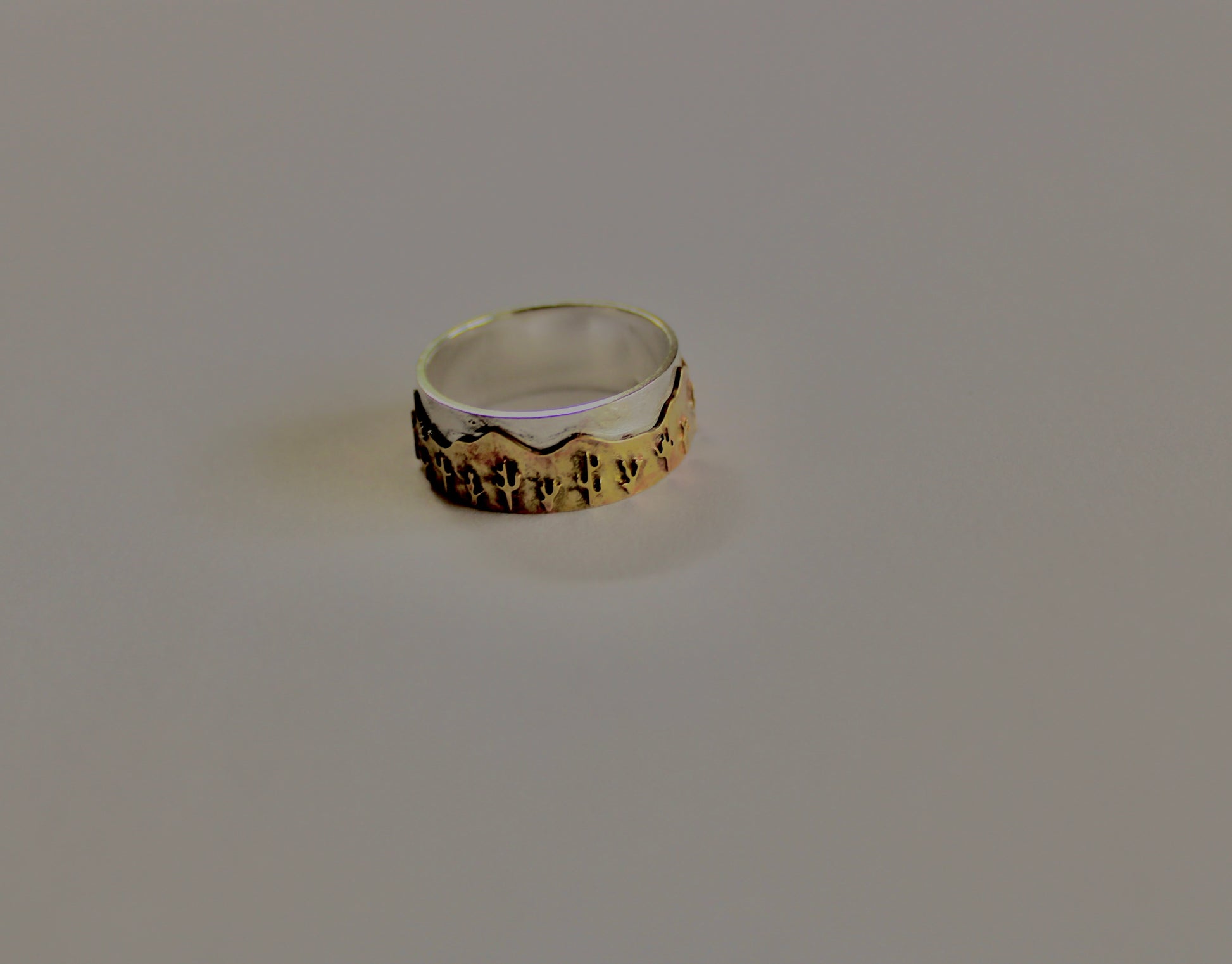 Sterling Silver Ring band 8MM with Brass Cactus embellishments.