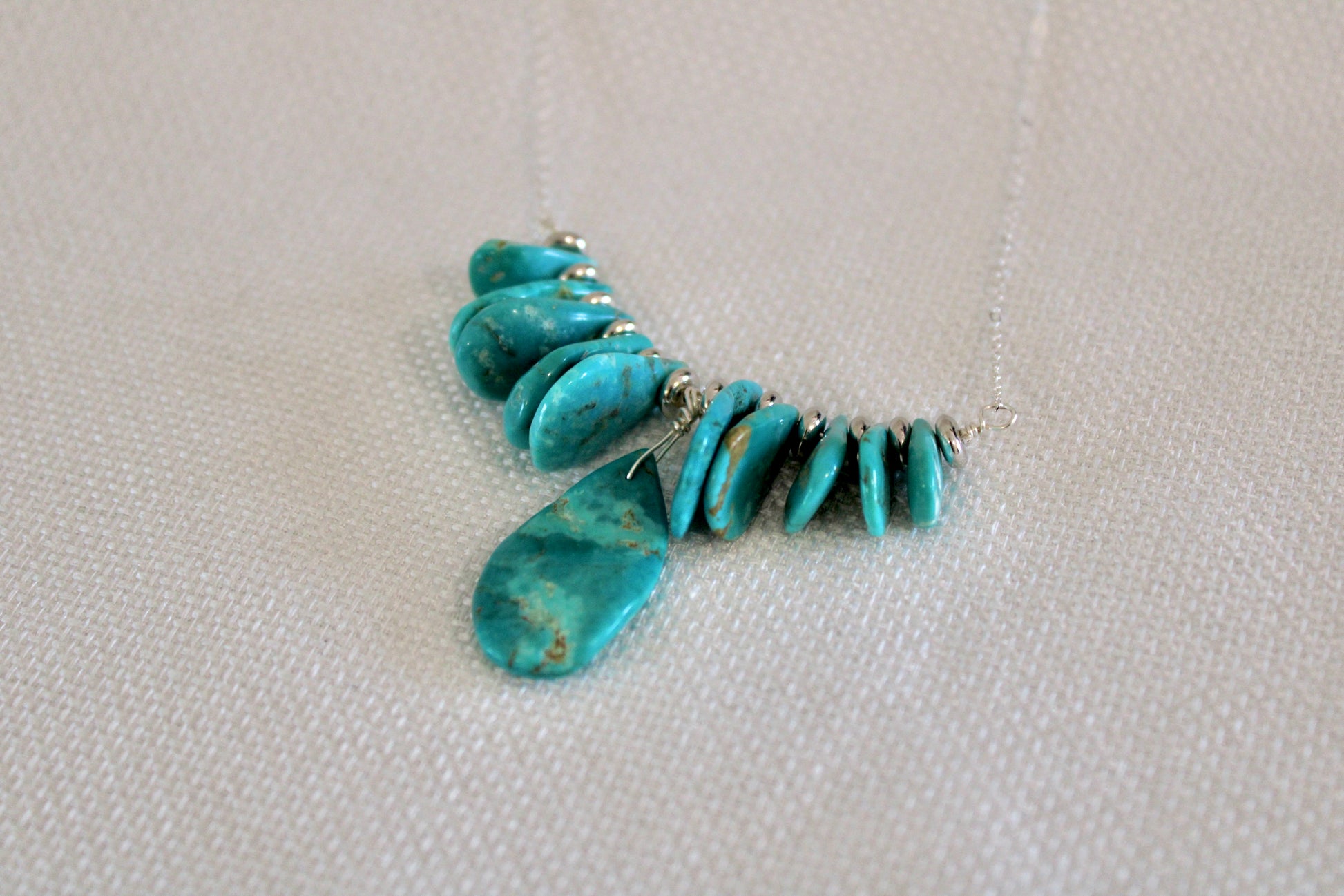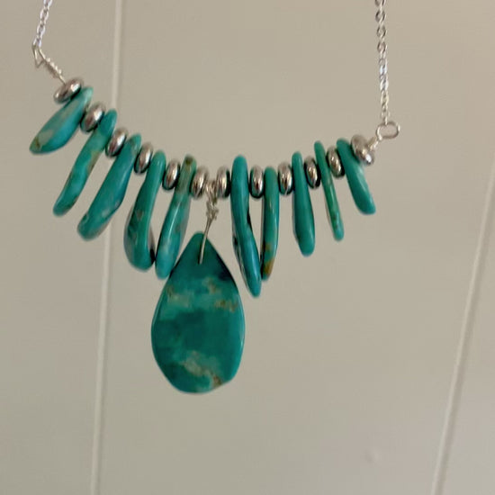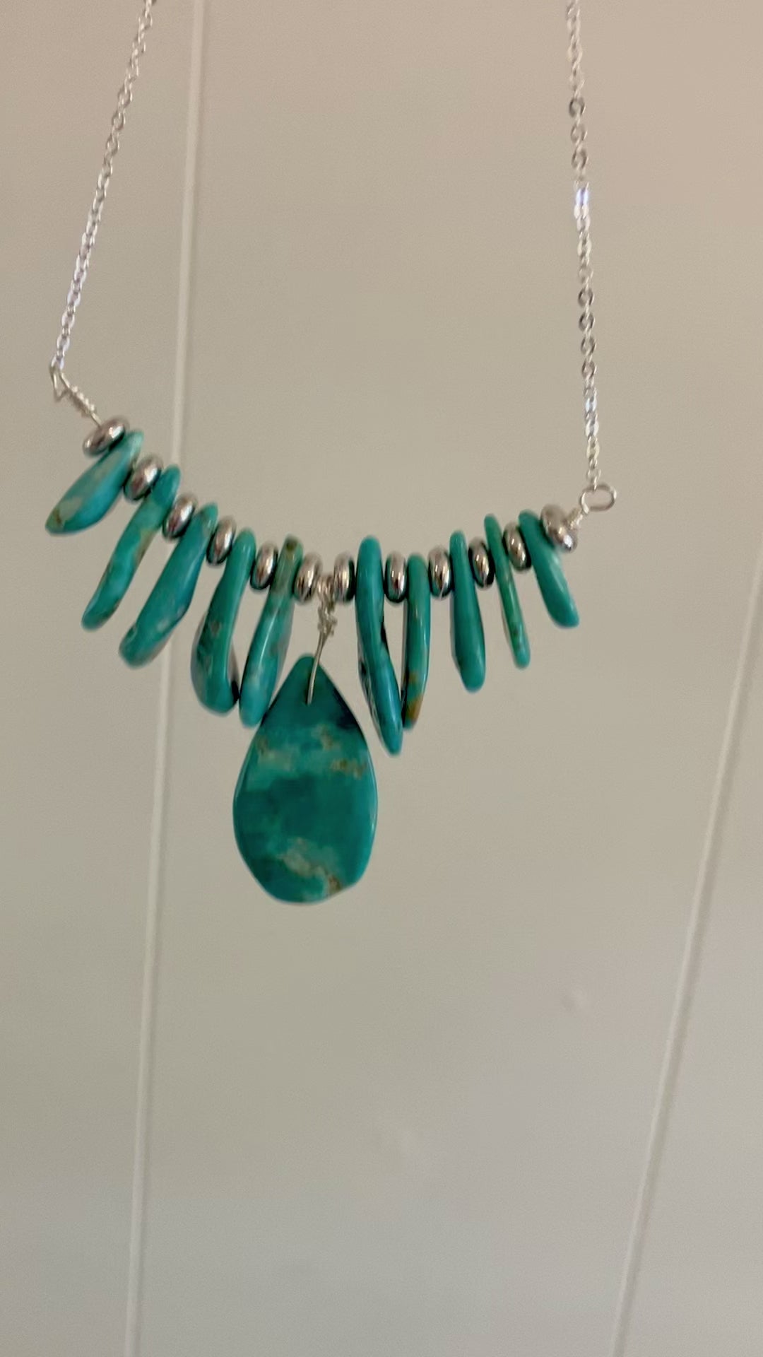 Sterling silver necklace with real Turquoise Beads. Lobster clasp. 16 inch Sterling Silver Rolo chain. Lobster clasp, not adjustable.