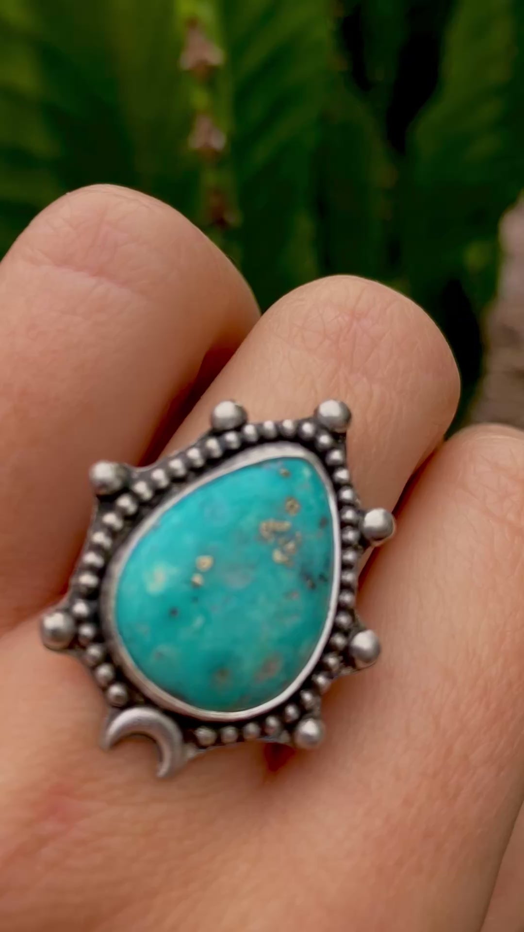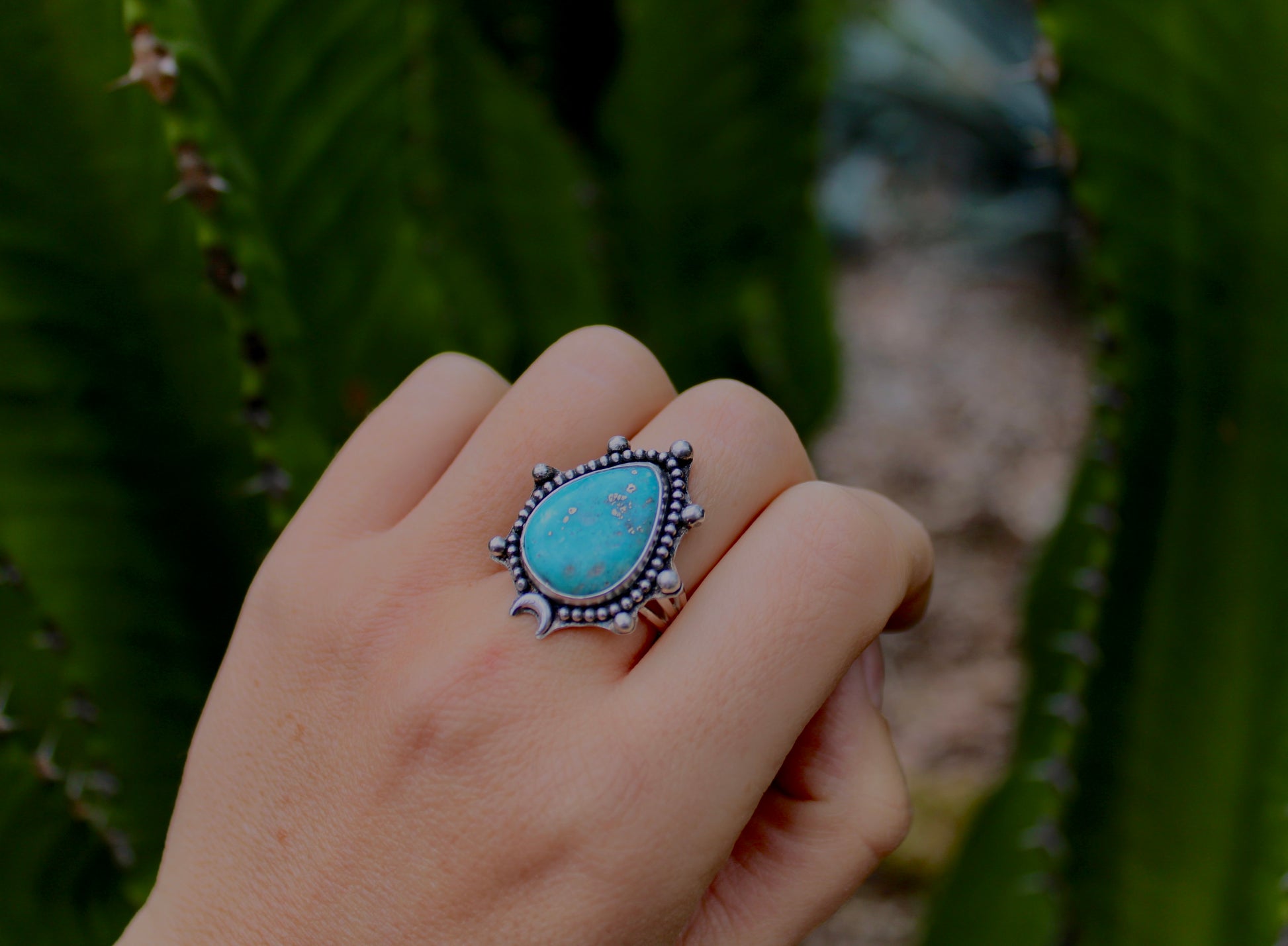 Emerald Valley Ring with moon accent- size 7