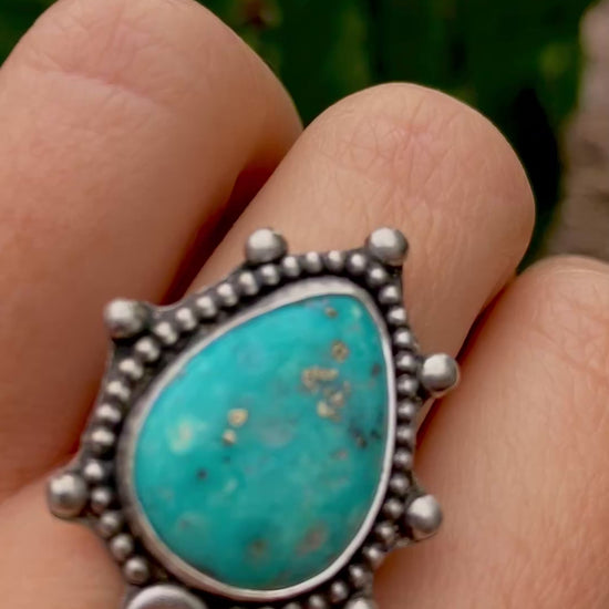 Size 7- Emerald Valley Turquoise Ring set in Sterling Silver on a triple ring shank.