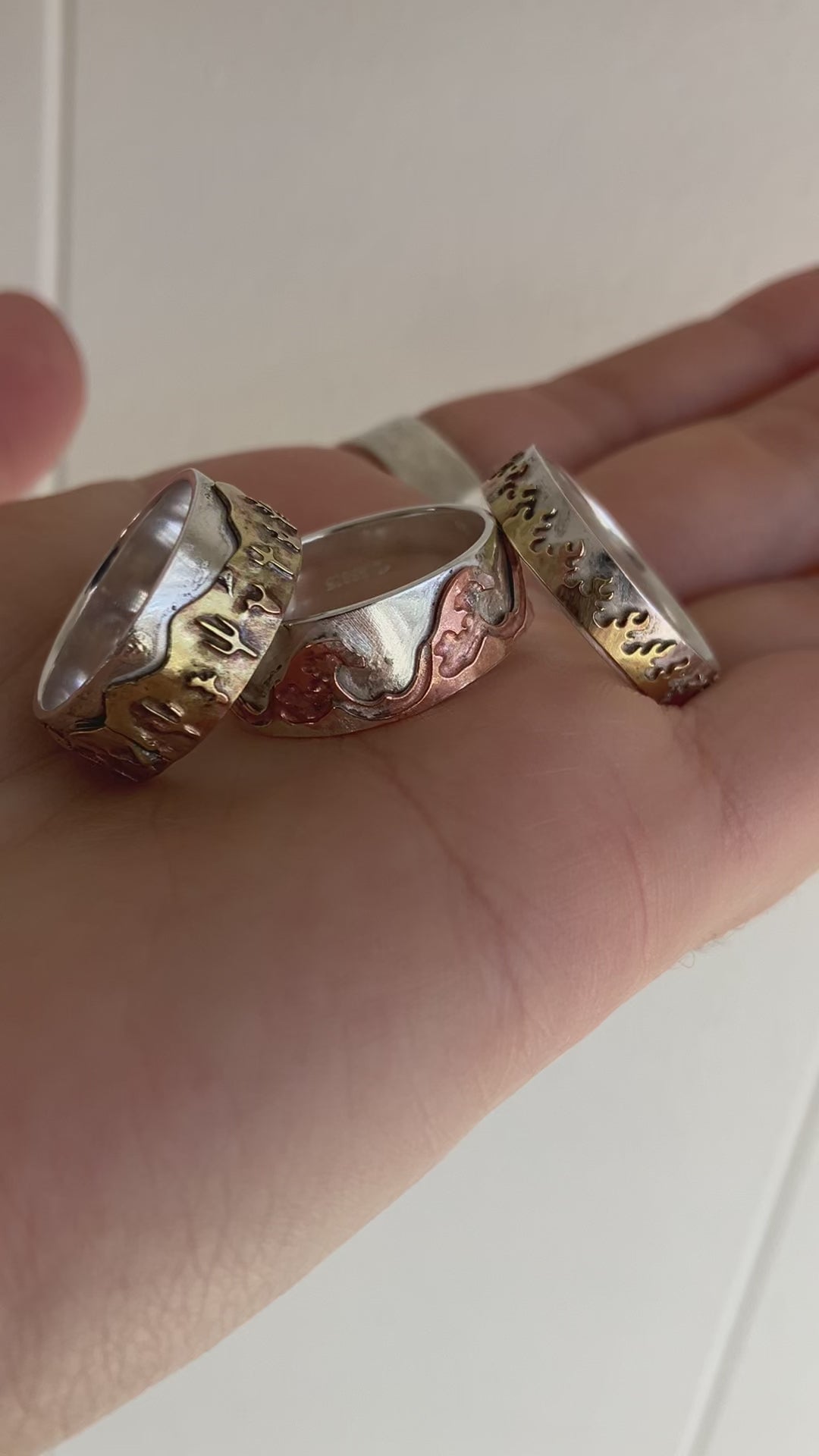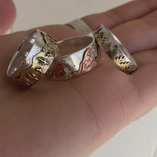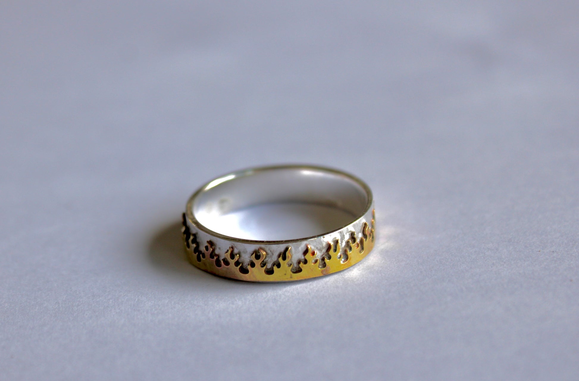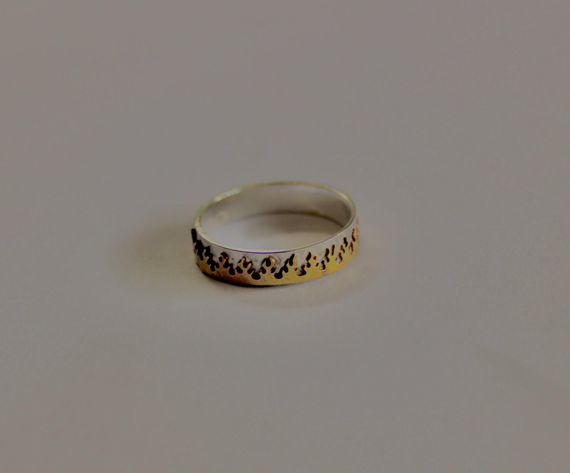 Sterling Silver Ring band 5MM with brass flame embellishments.