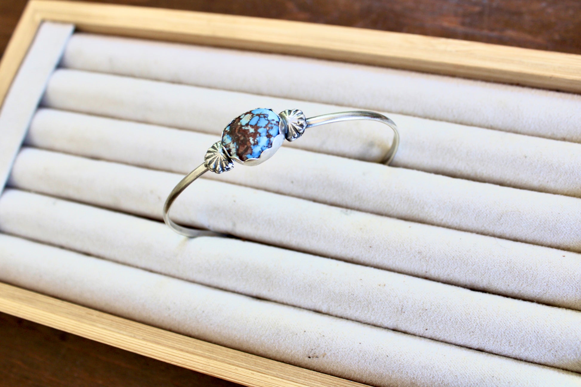 Sterling Silver Golden Hills Turquoise Cuff. Cuff is approximately 6 inches. Adjustable as silver is soft and flexible. Embellishments are handmade from Silver.