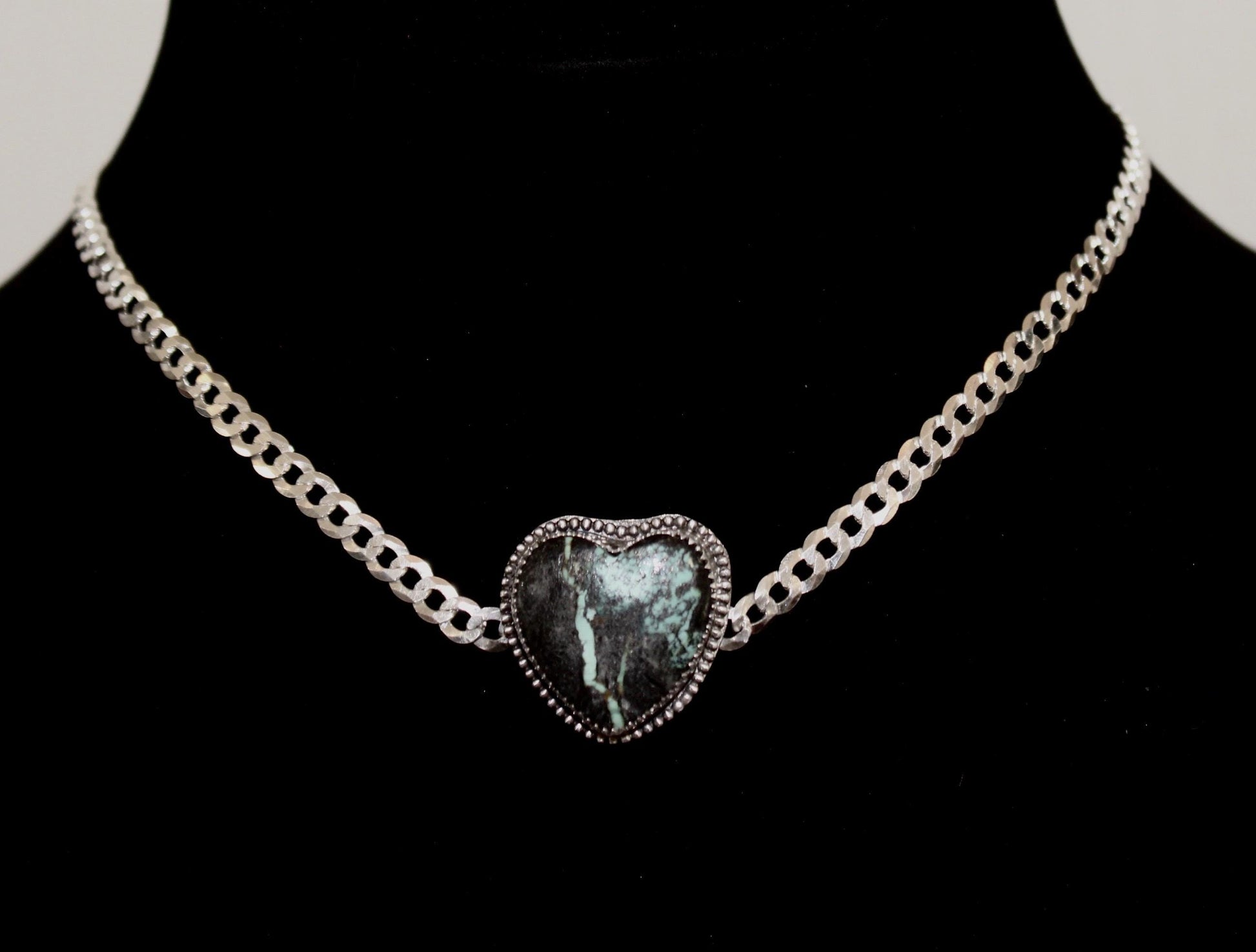 Heart Choker with Hubei Turquoise, Sterling Silver