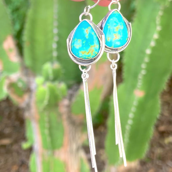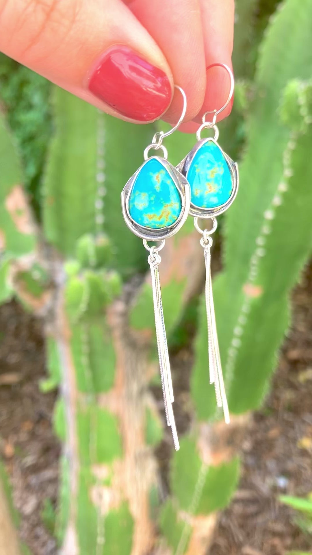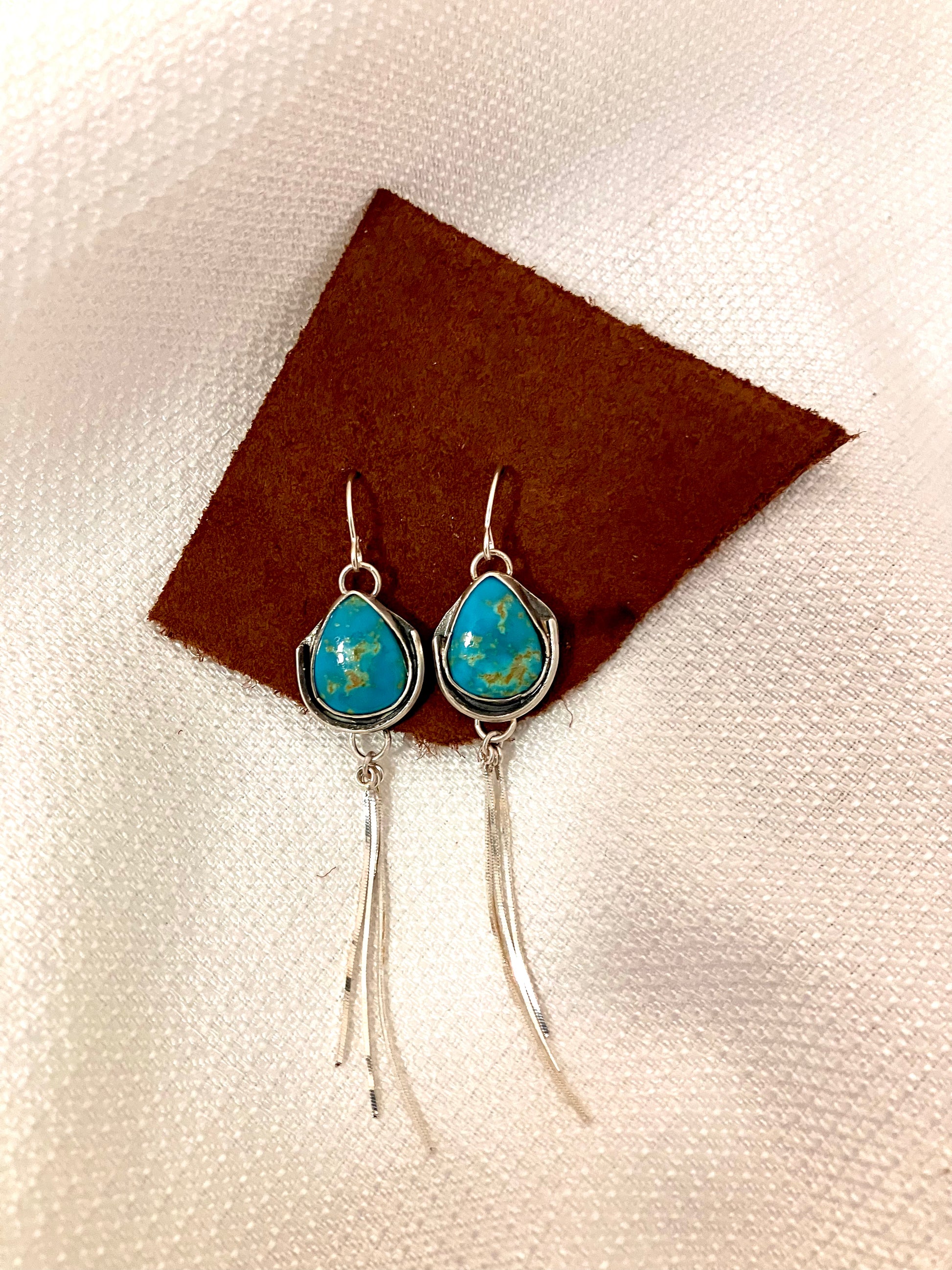 Kingman Turquoise earring pair. Sterling silver snake chain accent and Sterling ear wire.