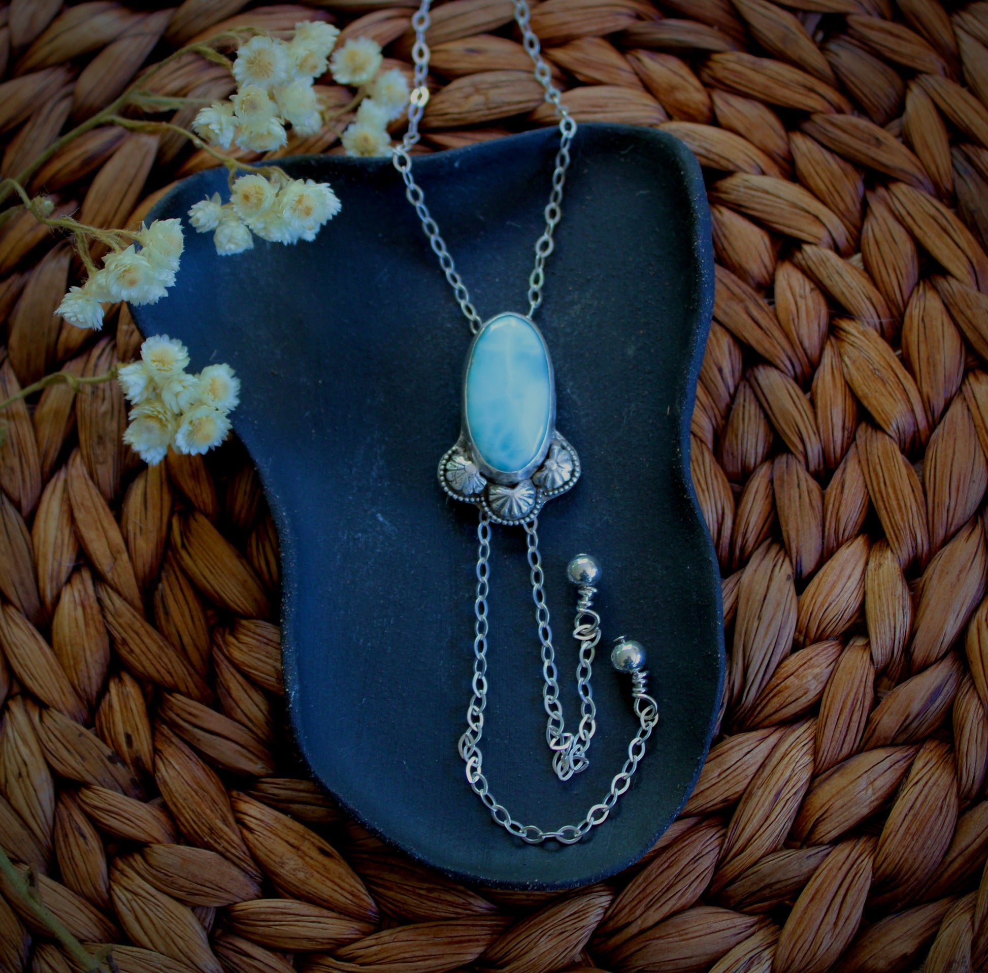 Larimar sourced and cut from Lapidary artist in New Mexico