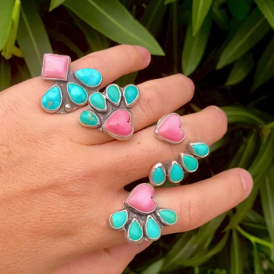 Pink Conch Shell with Sierra Bella Turquoise - size 6.5