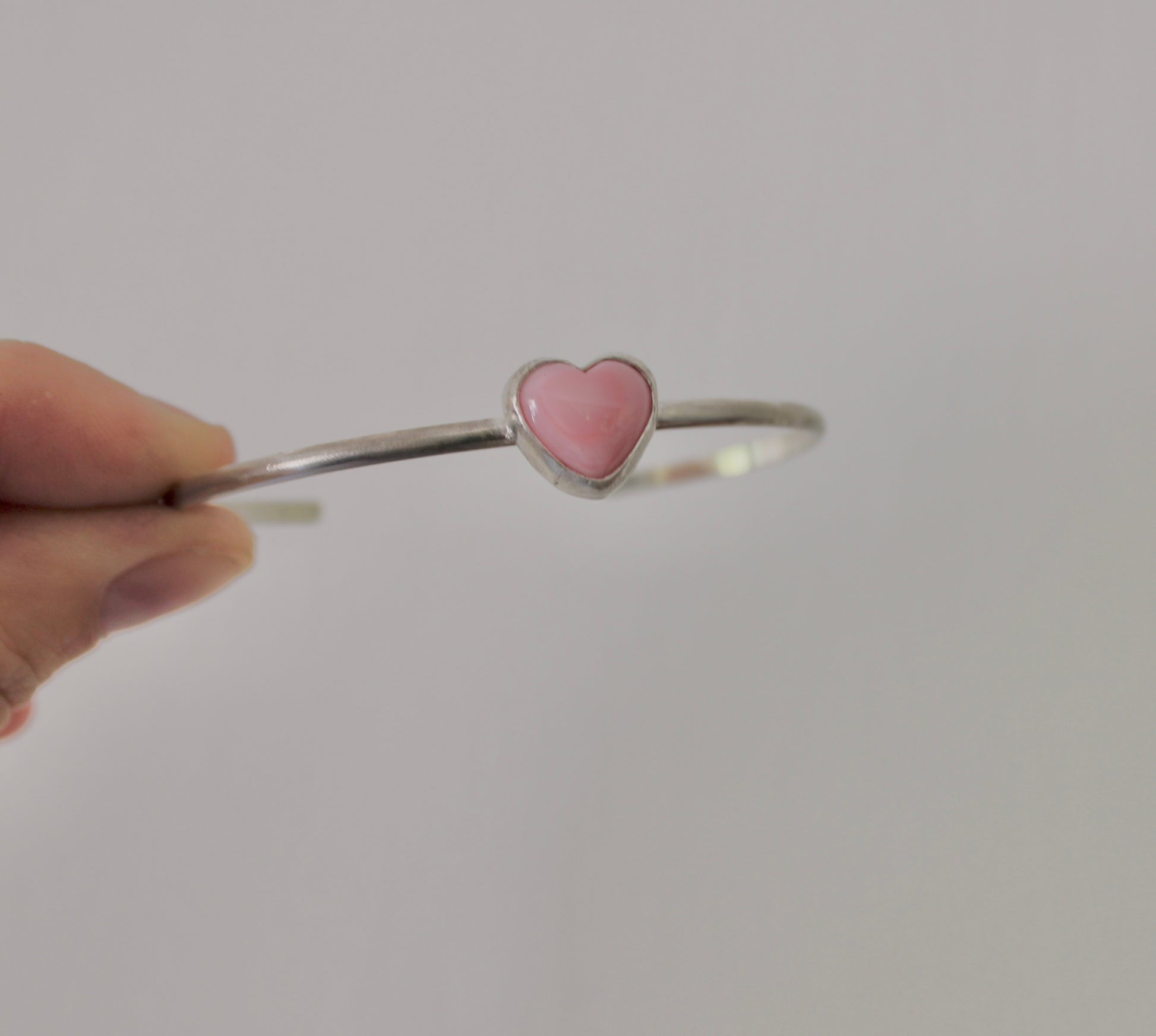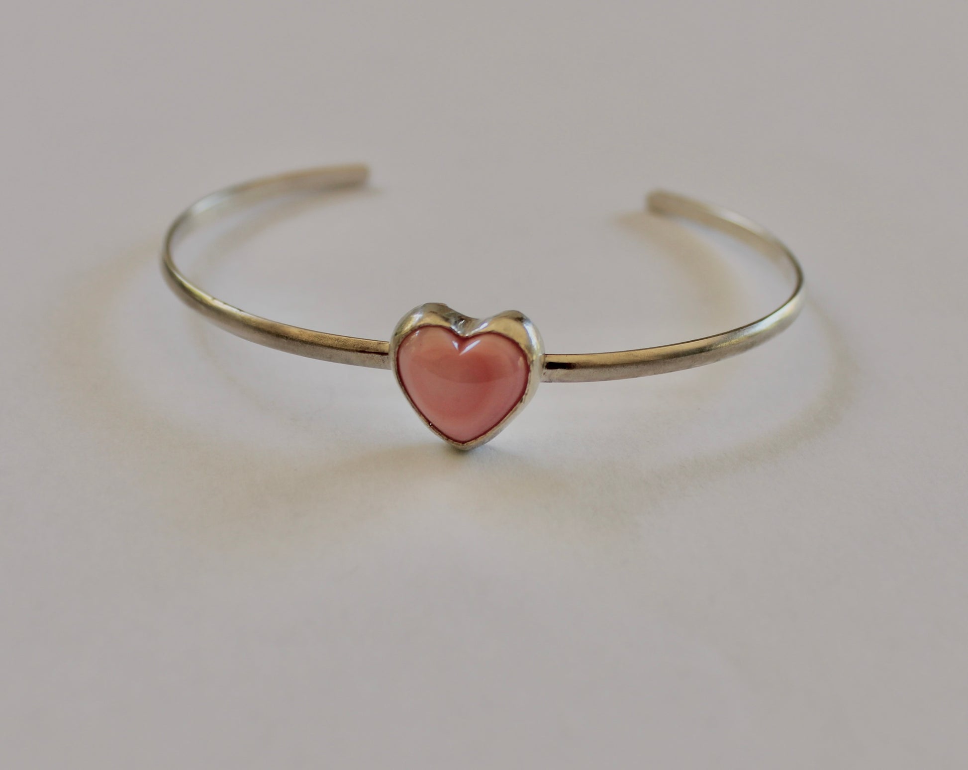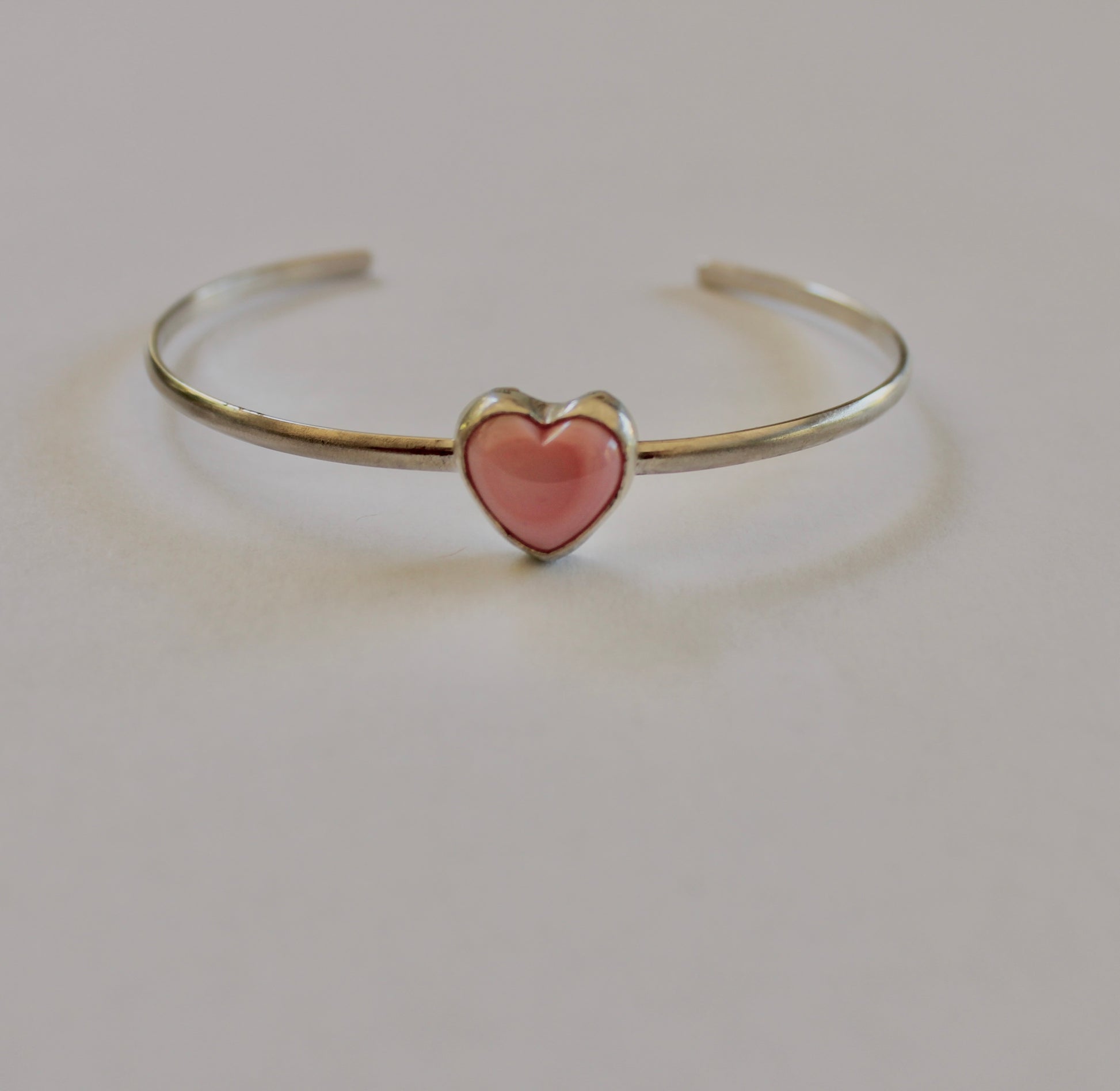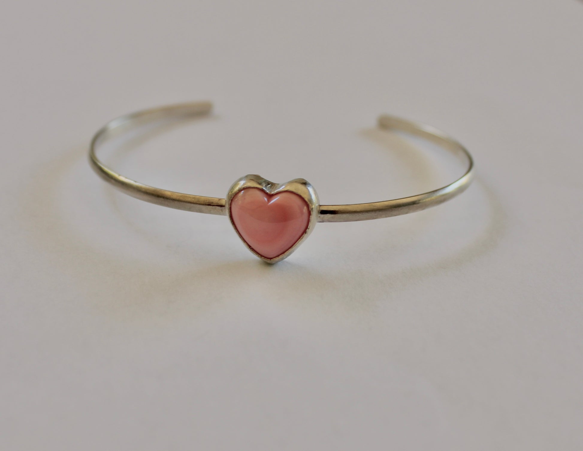 Sterling Silver Pink Queen Conch Shell Heart Cuff. Cuff is approximately 6 inches with 1 inch gap. Adjustable as silver is soft and flexible.