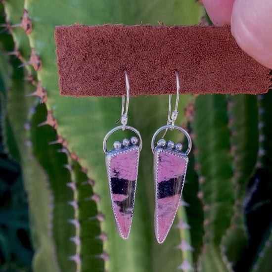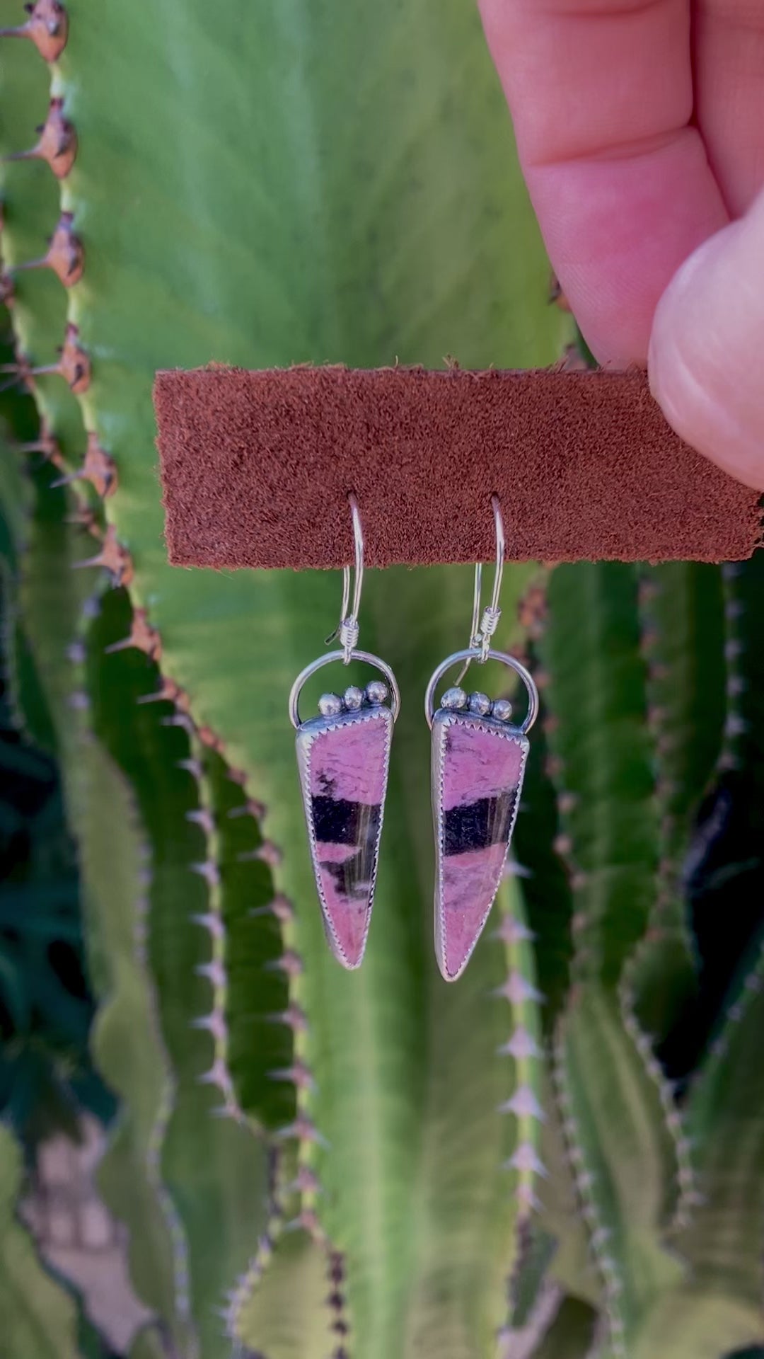 Rhodonite Pink Earrings set in Sterling Silver. Ear wires made with Sterling Silver and Sterling Silver accents.