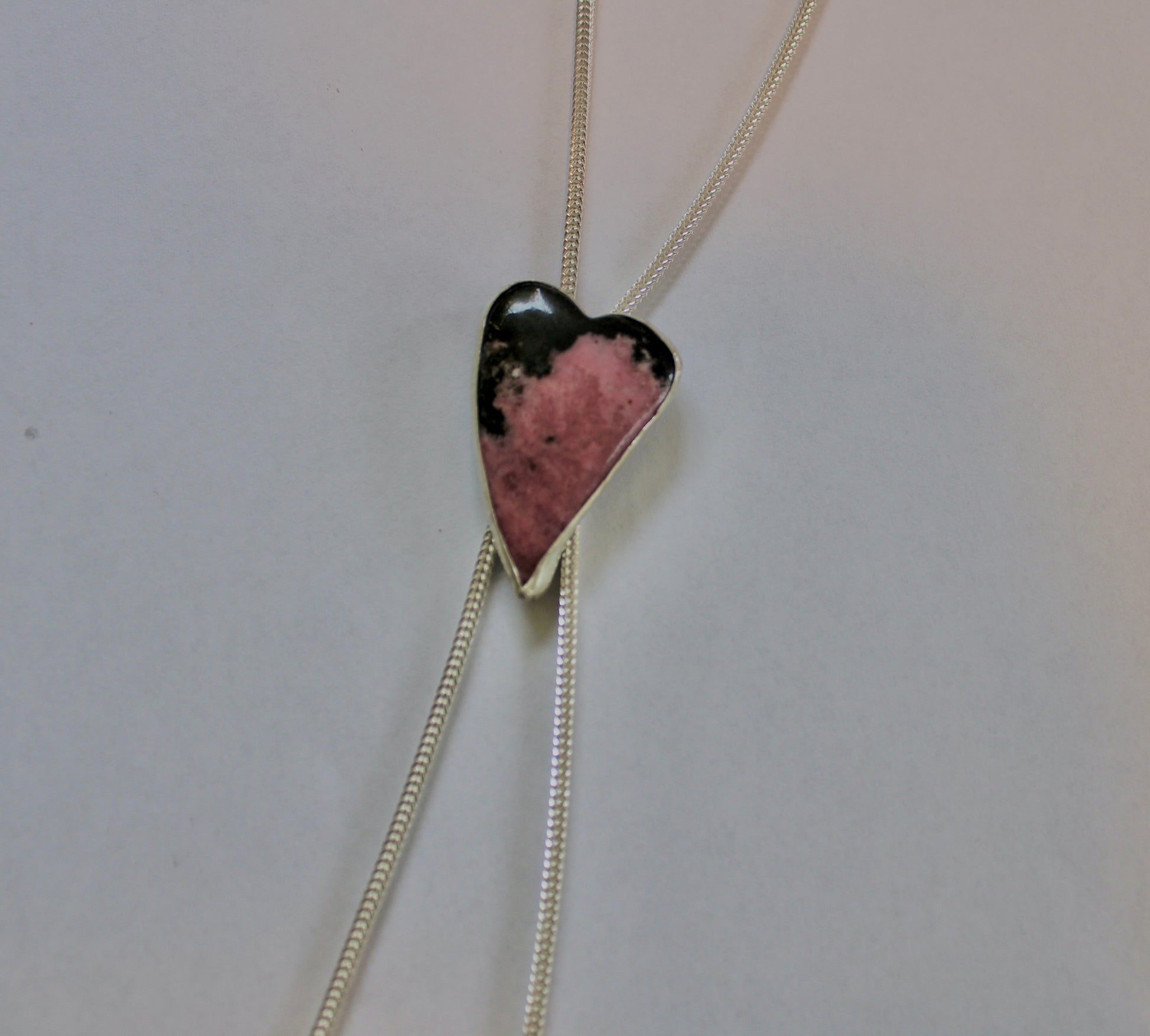Rhodonite heart sourced and cut from Lapidary Artist in Arizona.