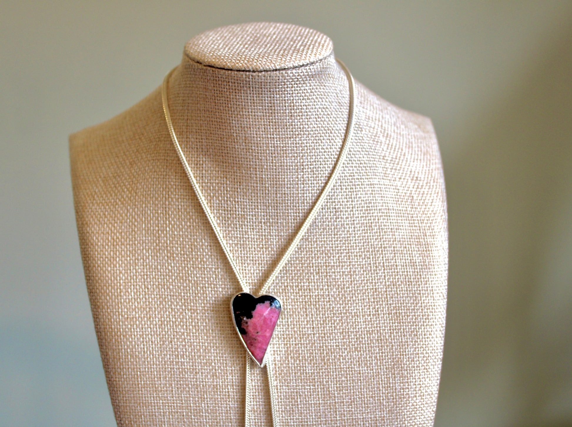 Pink Rhodonite Heart Bolo Necklace