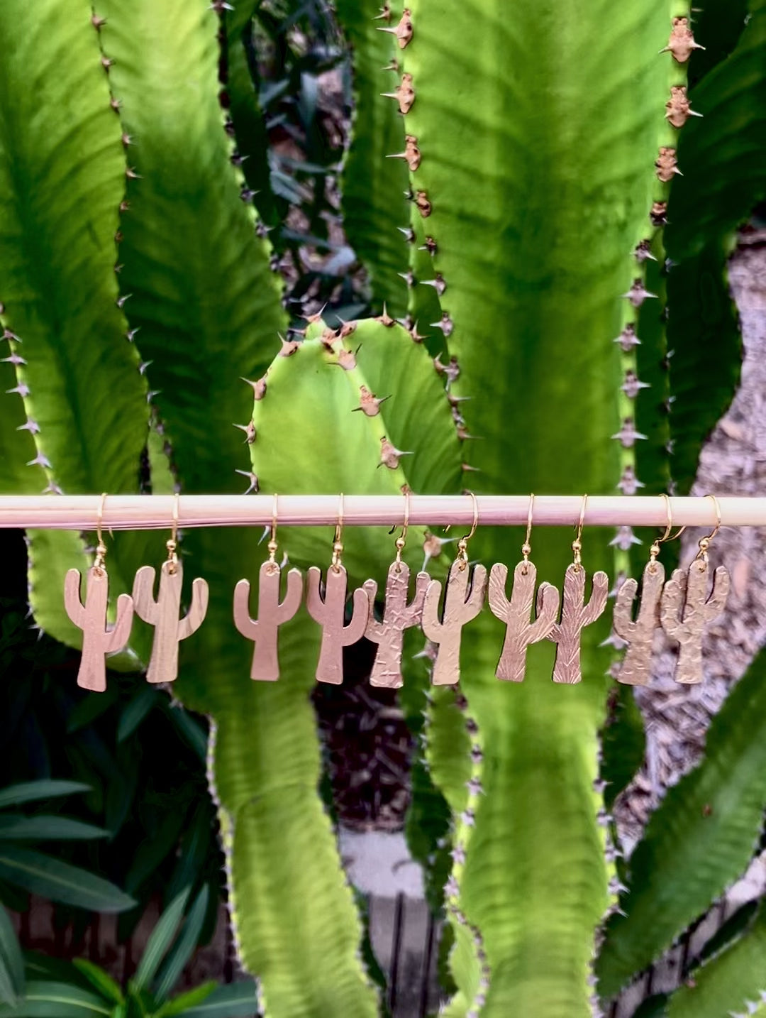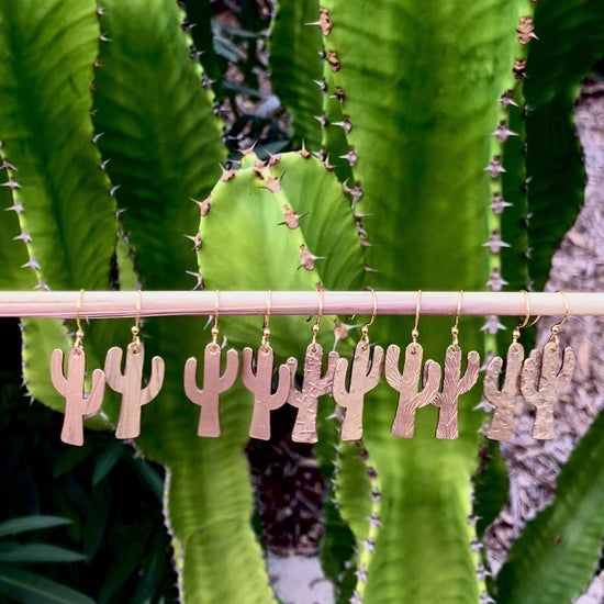 Stamped Saguaro Cactus earrings made from brass and brass ear wires. Please allow up to 1 week production for these as they are a made to order item. Cactus is 1 inch long.