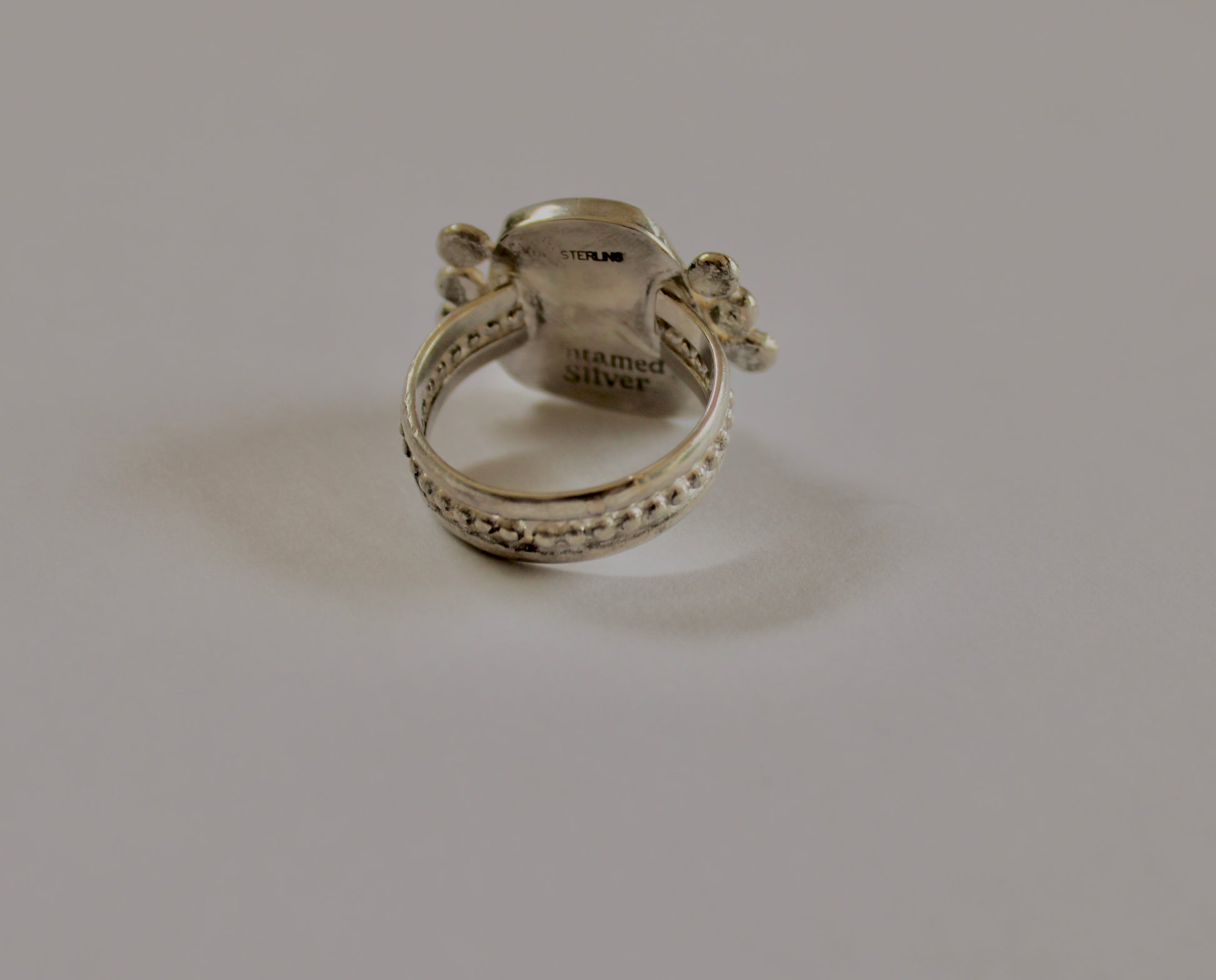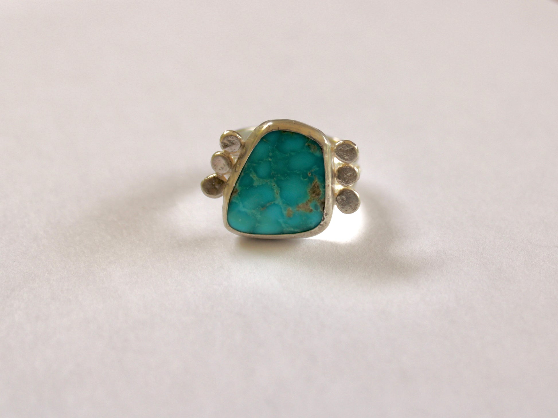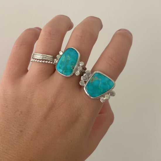 Size 10 1/2 - Blue Gem Turquoise Ring set in Sterling Silver on a handmade Sterling ring shank with beaded accent.