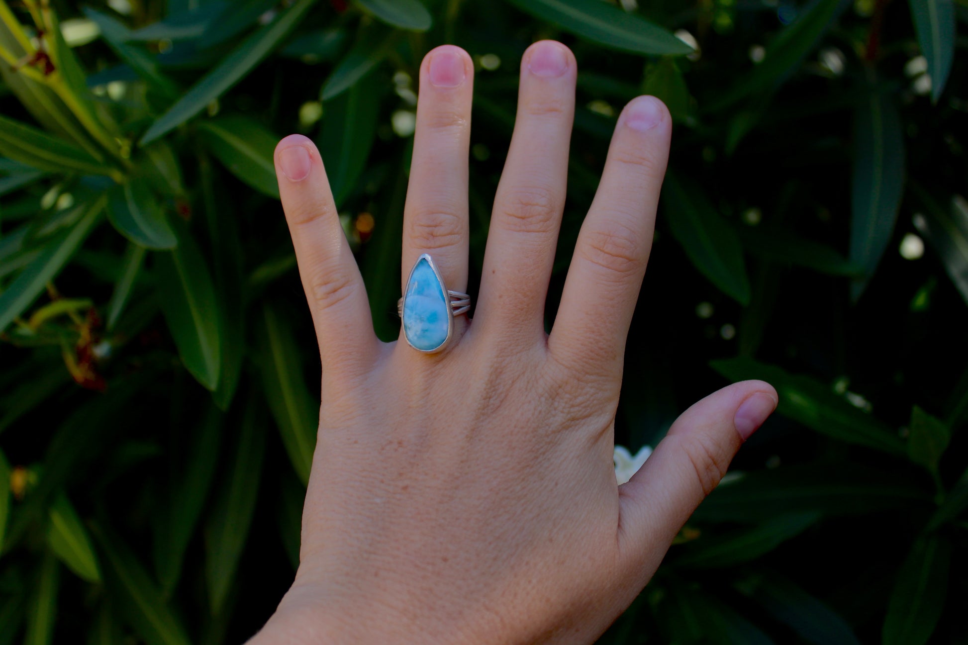 Size 6.5 - Larimar Ring on a Sterling Silver ring shank.
