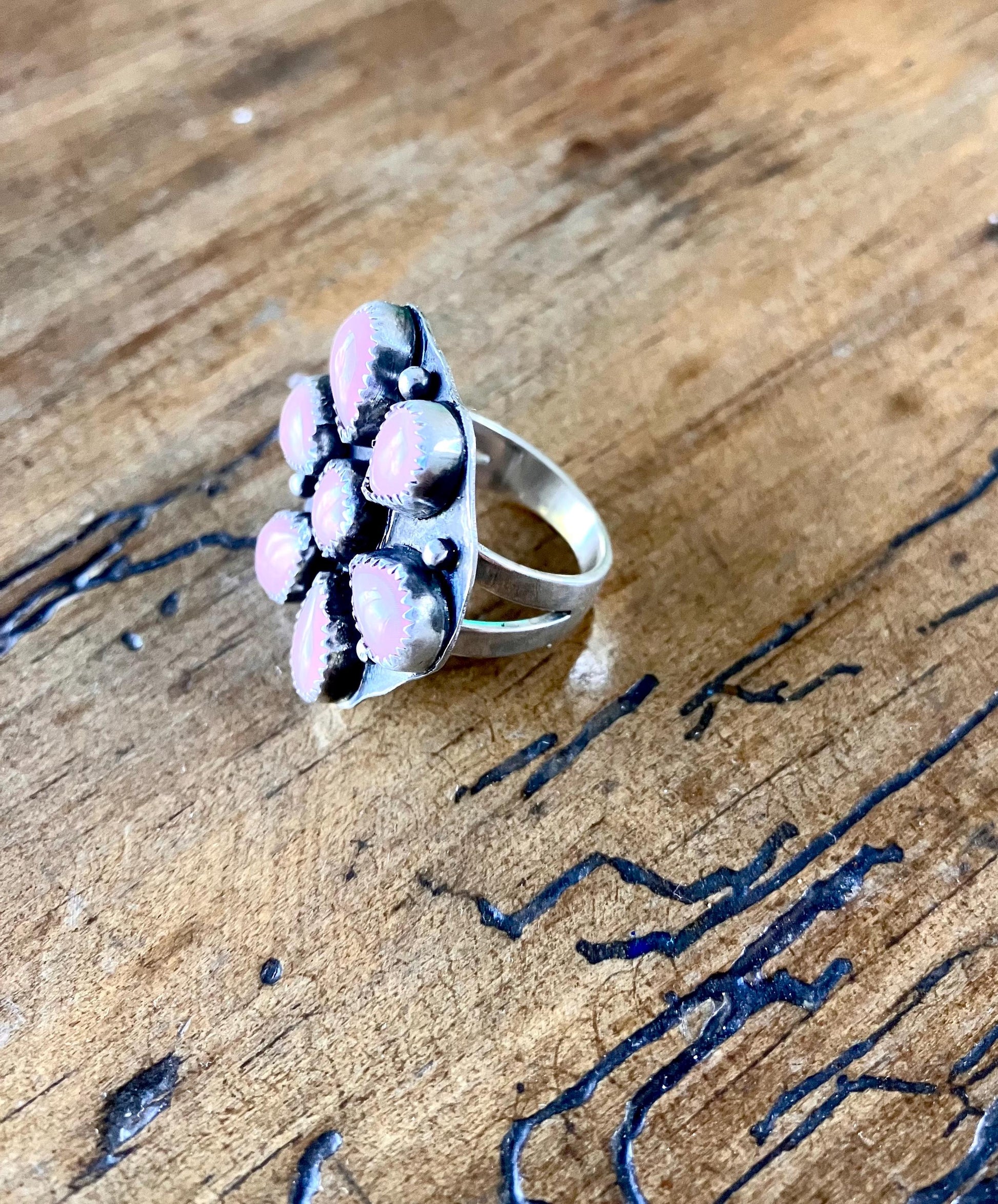 Size 6.5 Handmade Sterling Silver statement ring with Pink Queen Conch Shell. Double Ring shank.