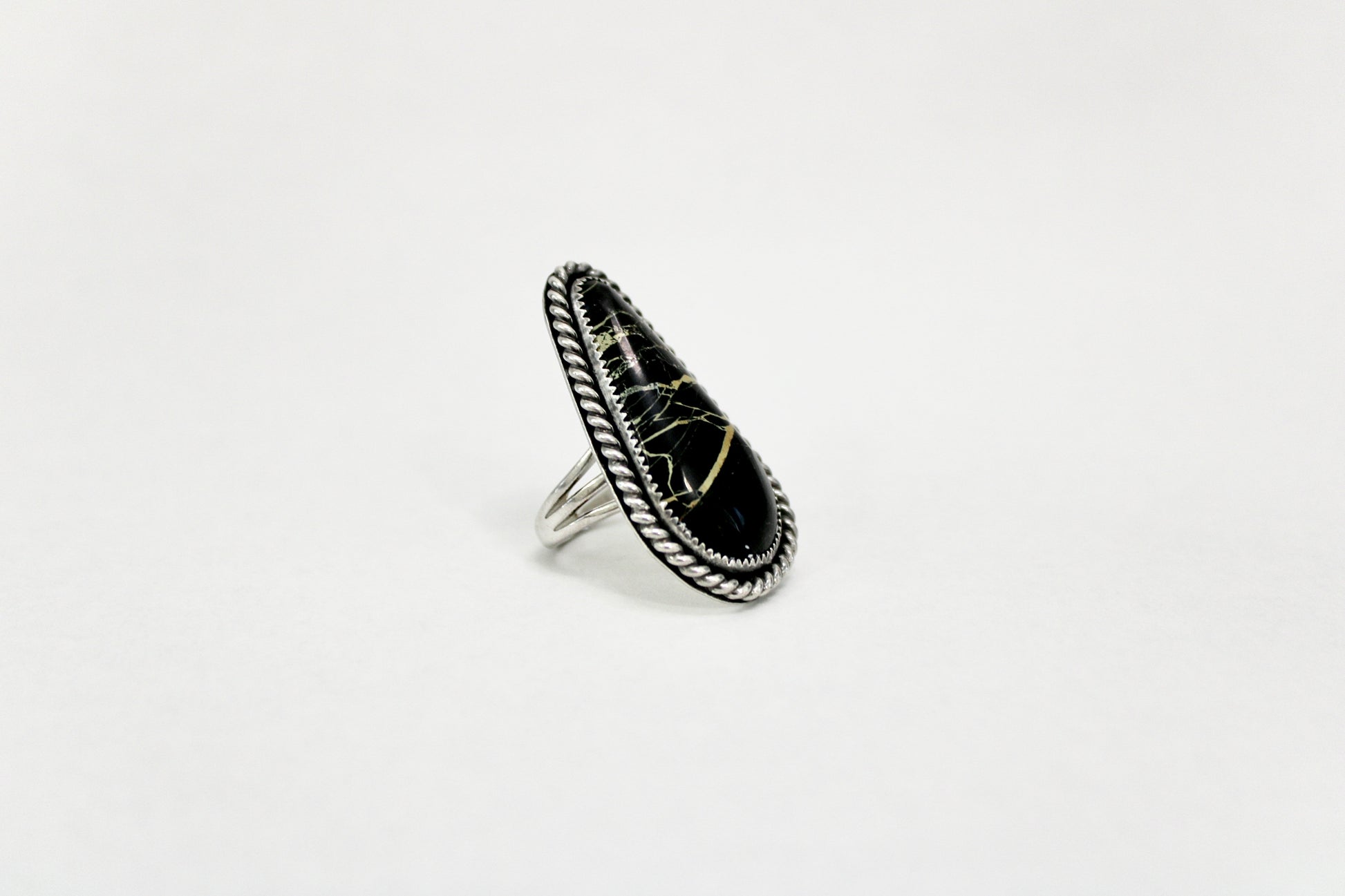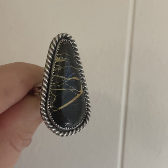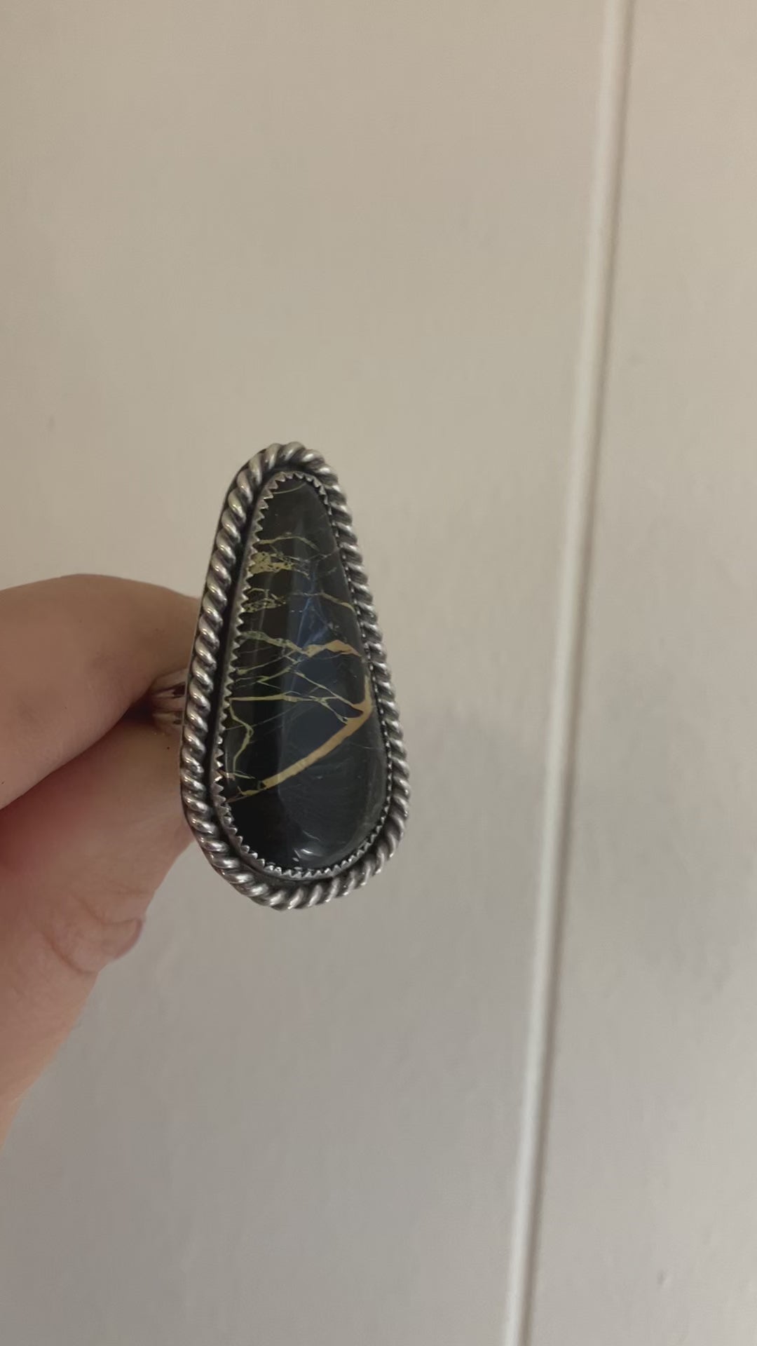 Size 6.5-Sterling Silver Ring with San Pedro Variscite on a triple Sterling Silver Ring shank.