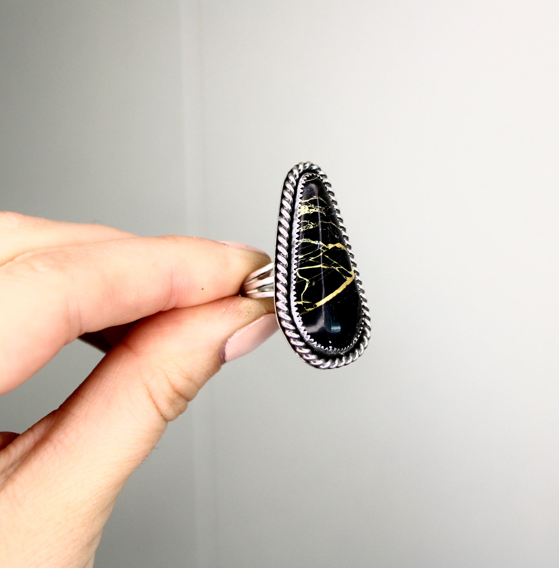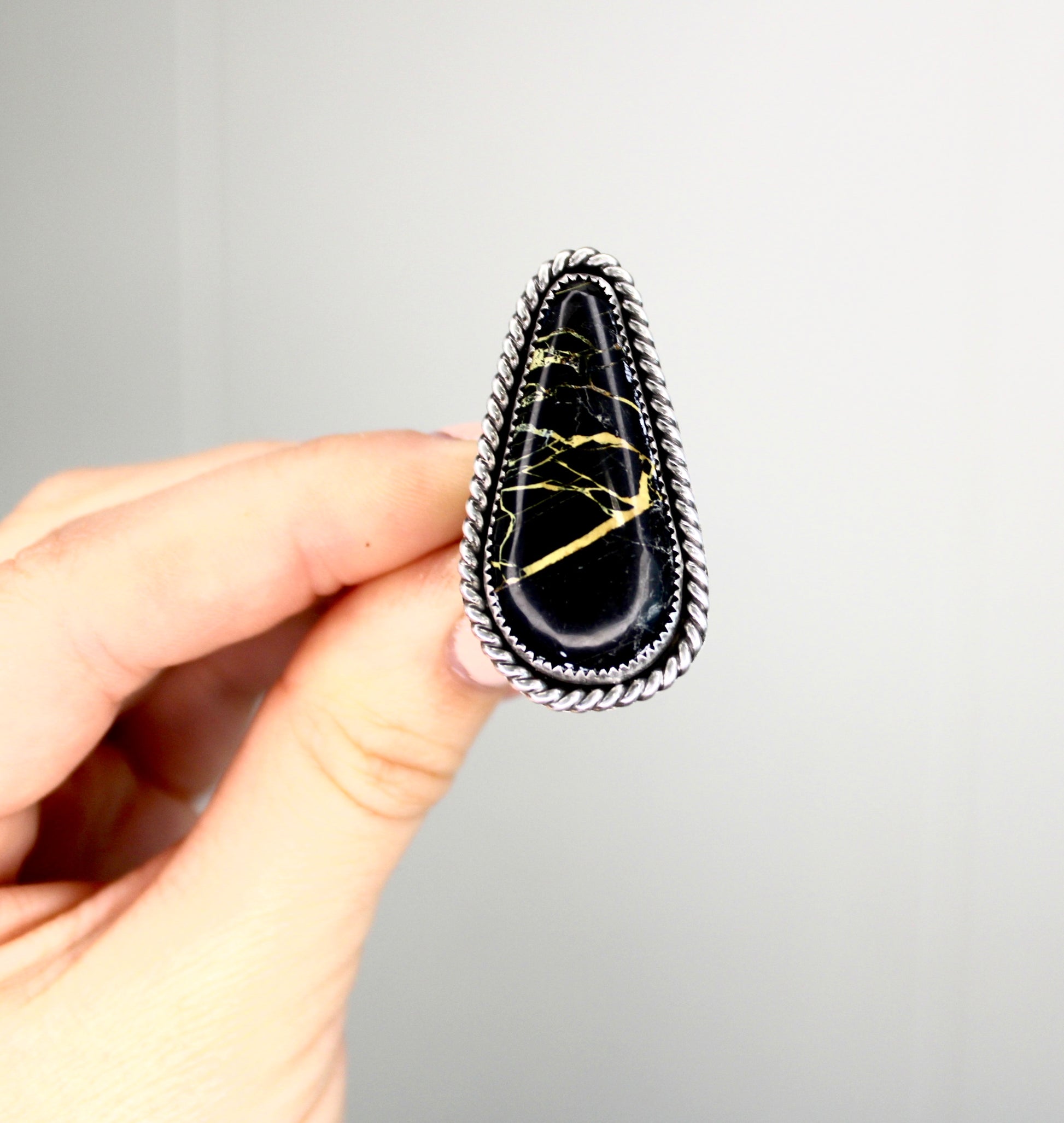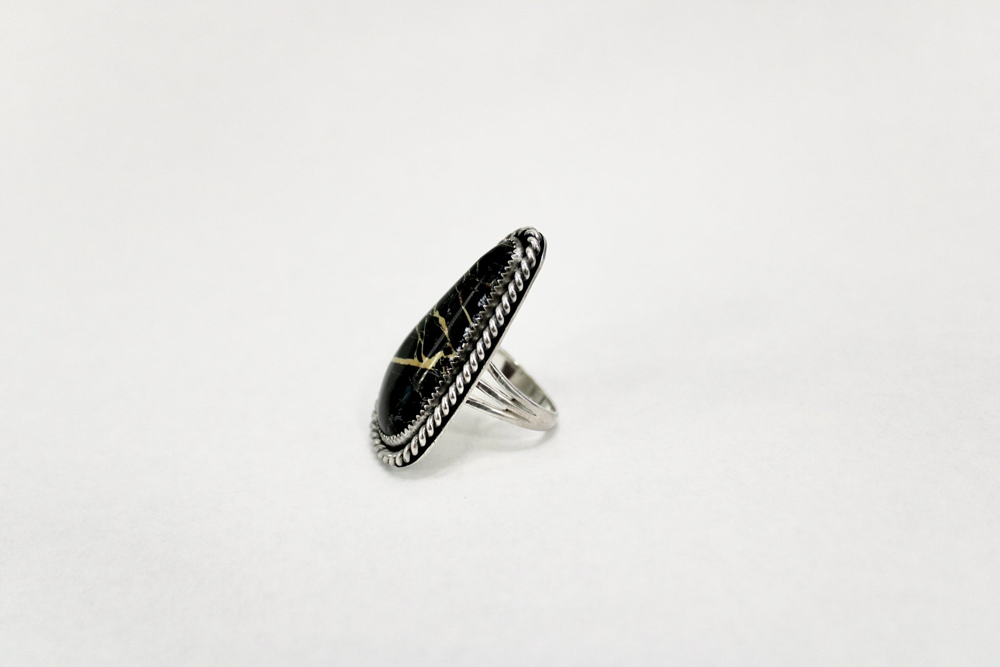 Size 6.5-Sterling Silver Ring with San Pedro Variscite on a triple Sterling Silver Ring shank.