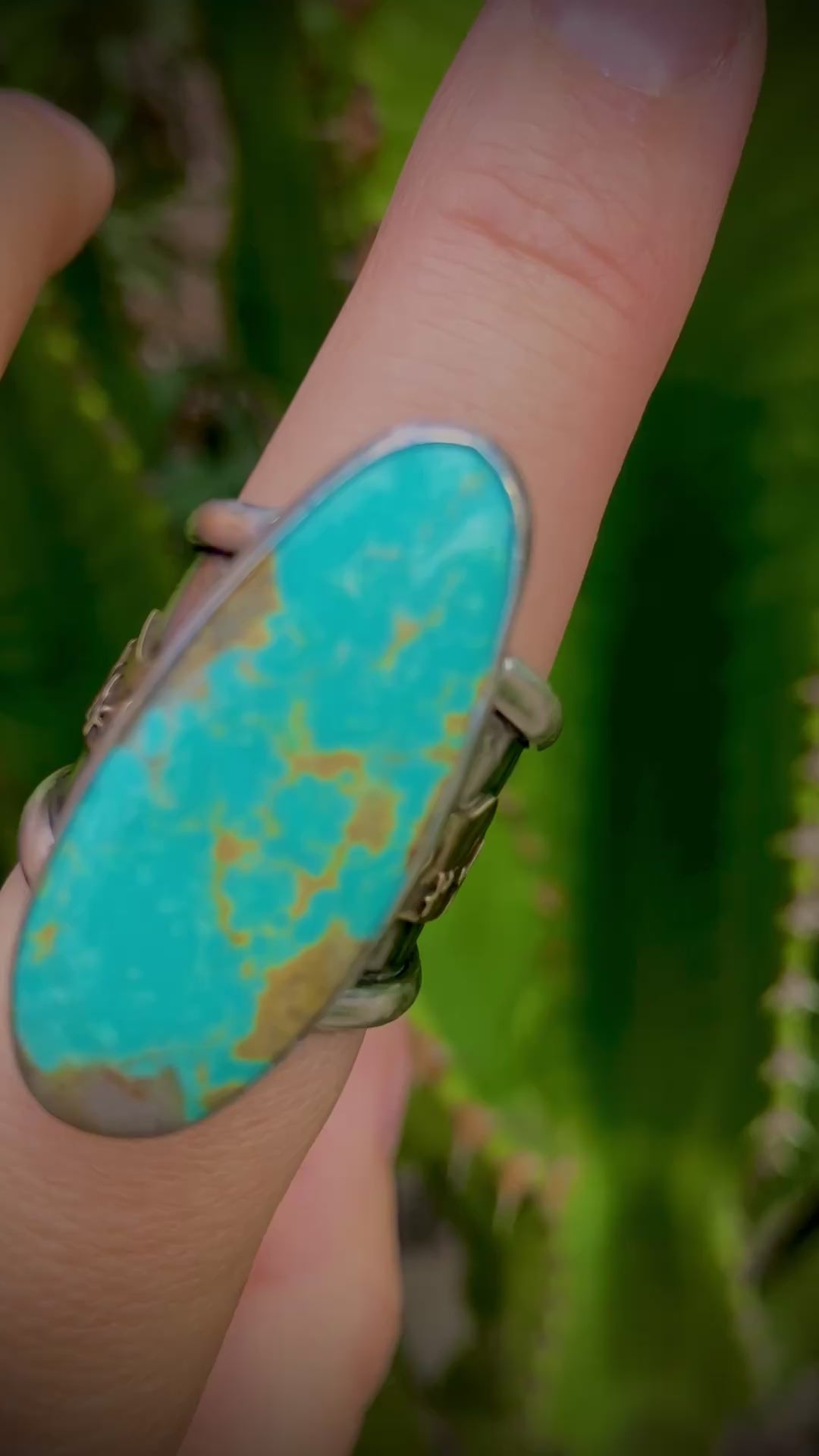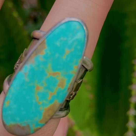 Size 7.5-Cactus Turquoise Sterling Silver Statement Ring