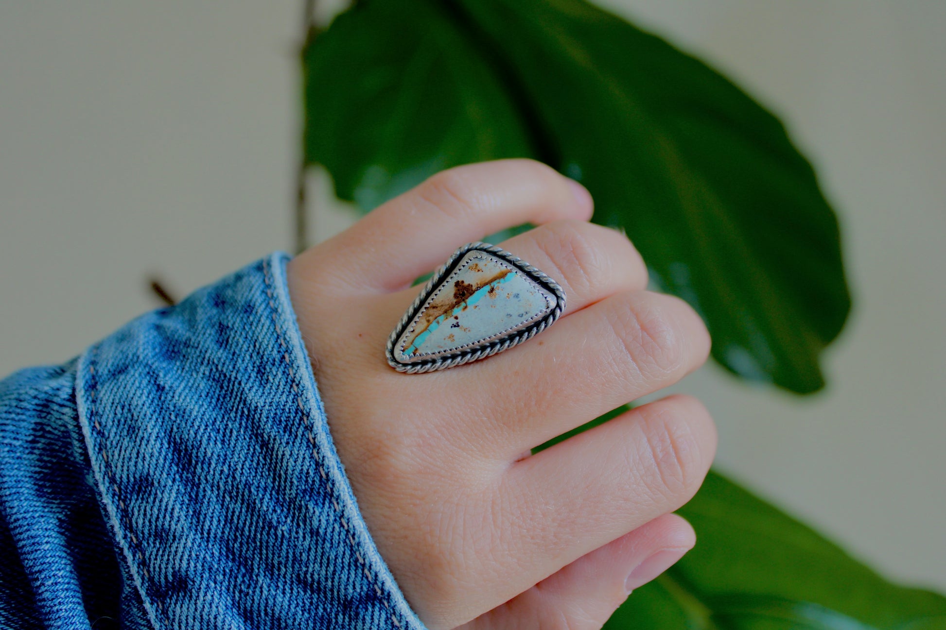 Size 7.5 -Handmade Sterling Silver statement ring with Royston Ribbon Turquoise set in a handmade Sterling Silver ring shank.