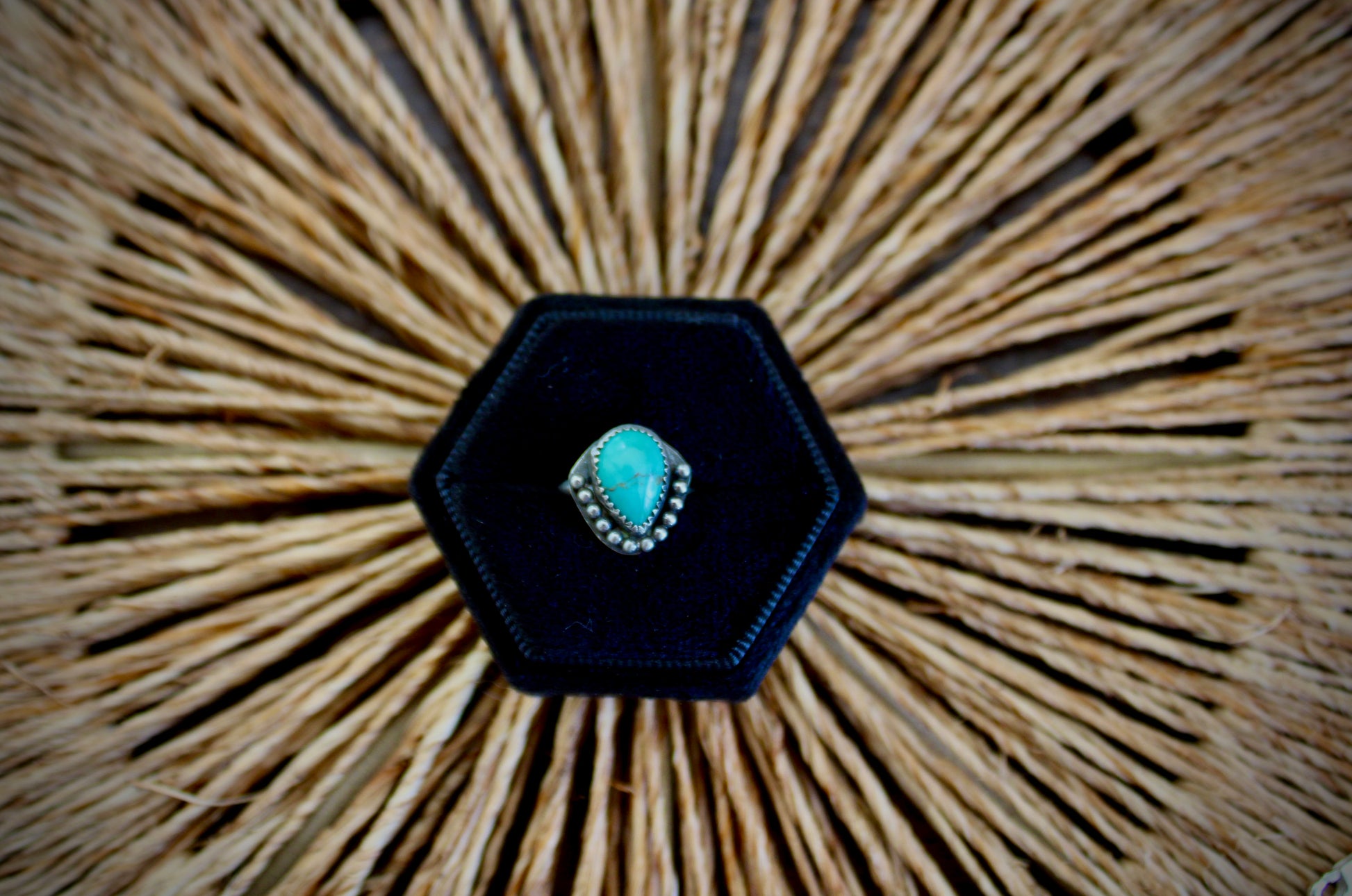 Size 7.5. Handmade Sterling Silver ring with Sonoran Turquoise.