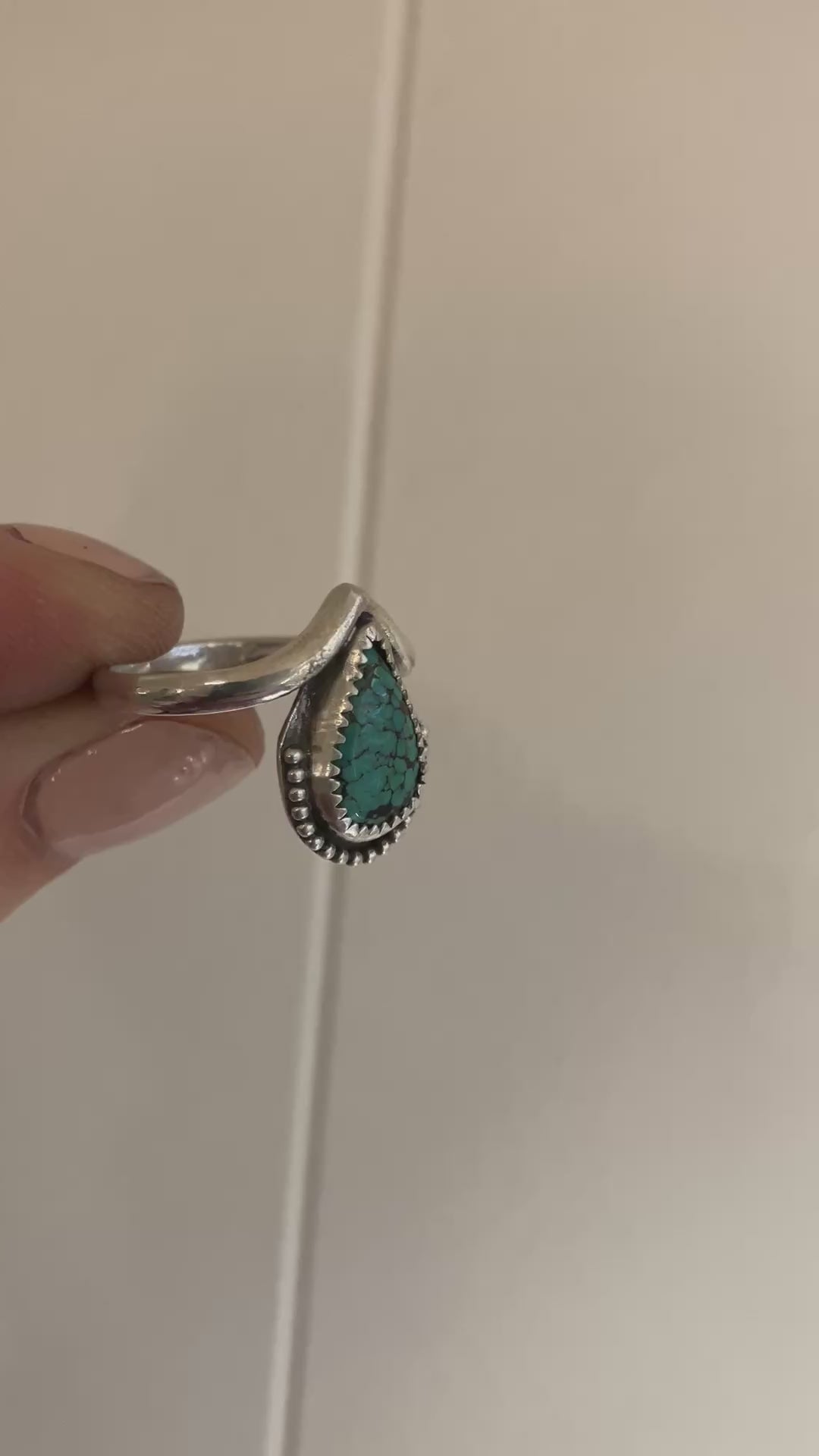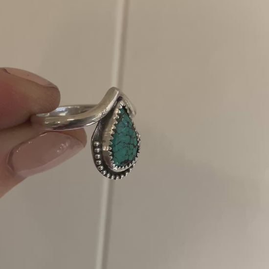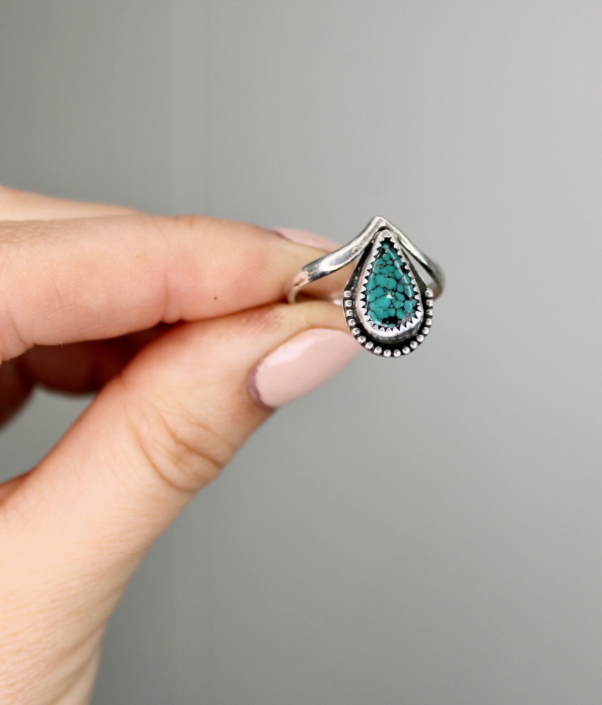 Size 7- Sterling Silver Chevron Ring with Hubei Turquoise.