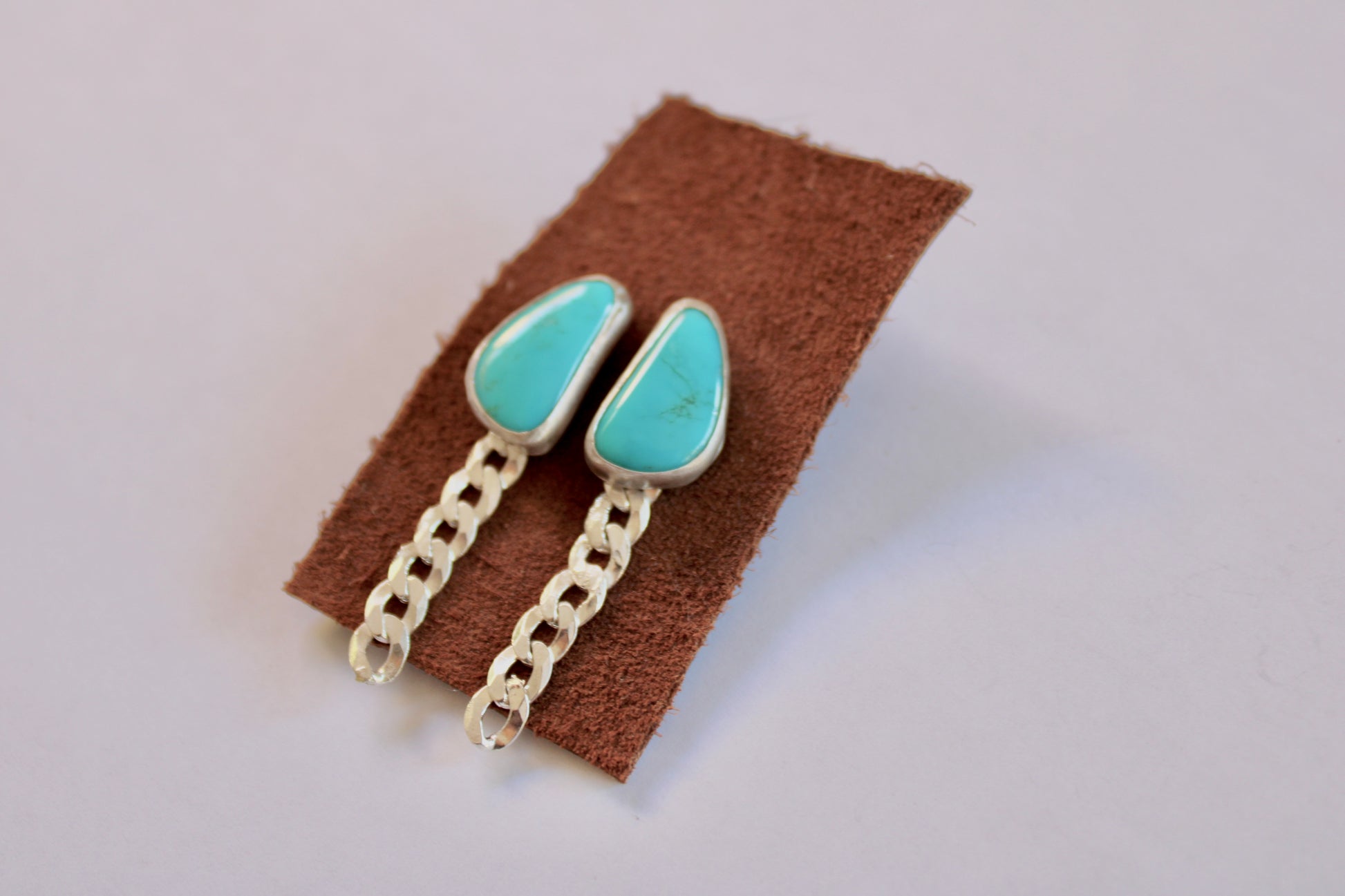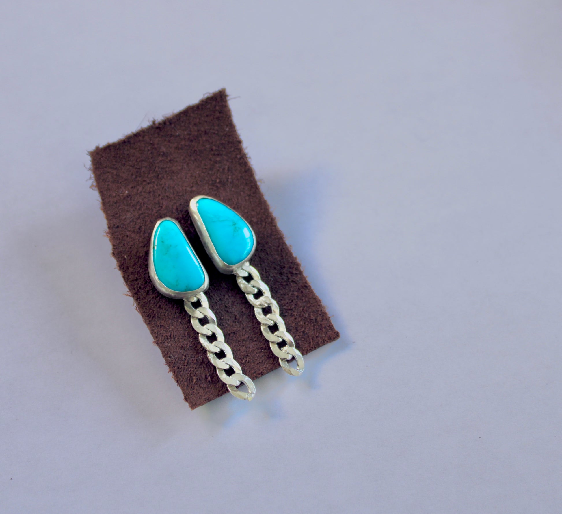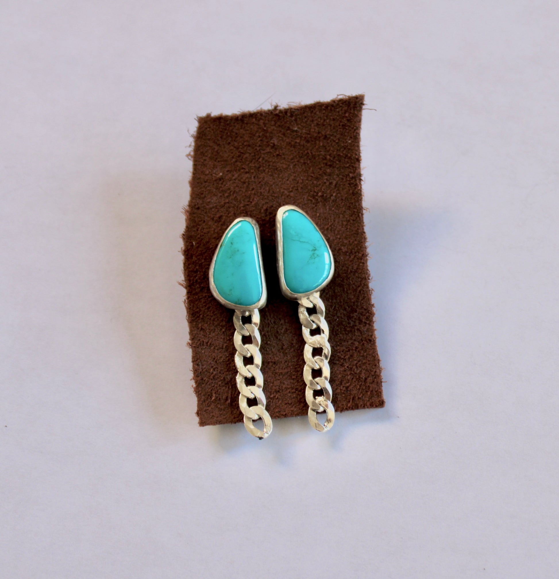 Sonoran Turquoise Earring studs set in Sterling Silver with curb chain accents