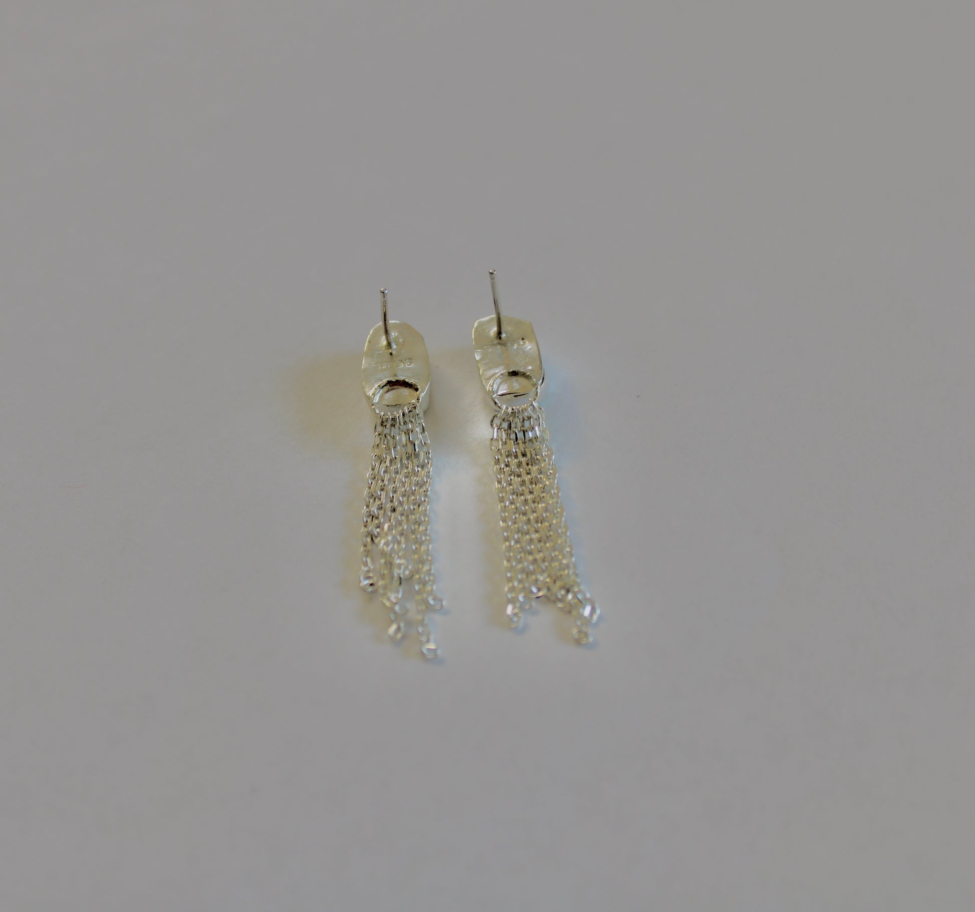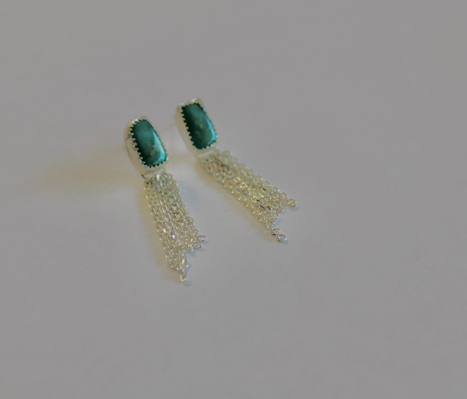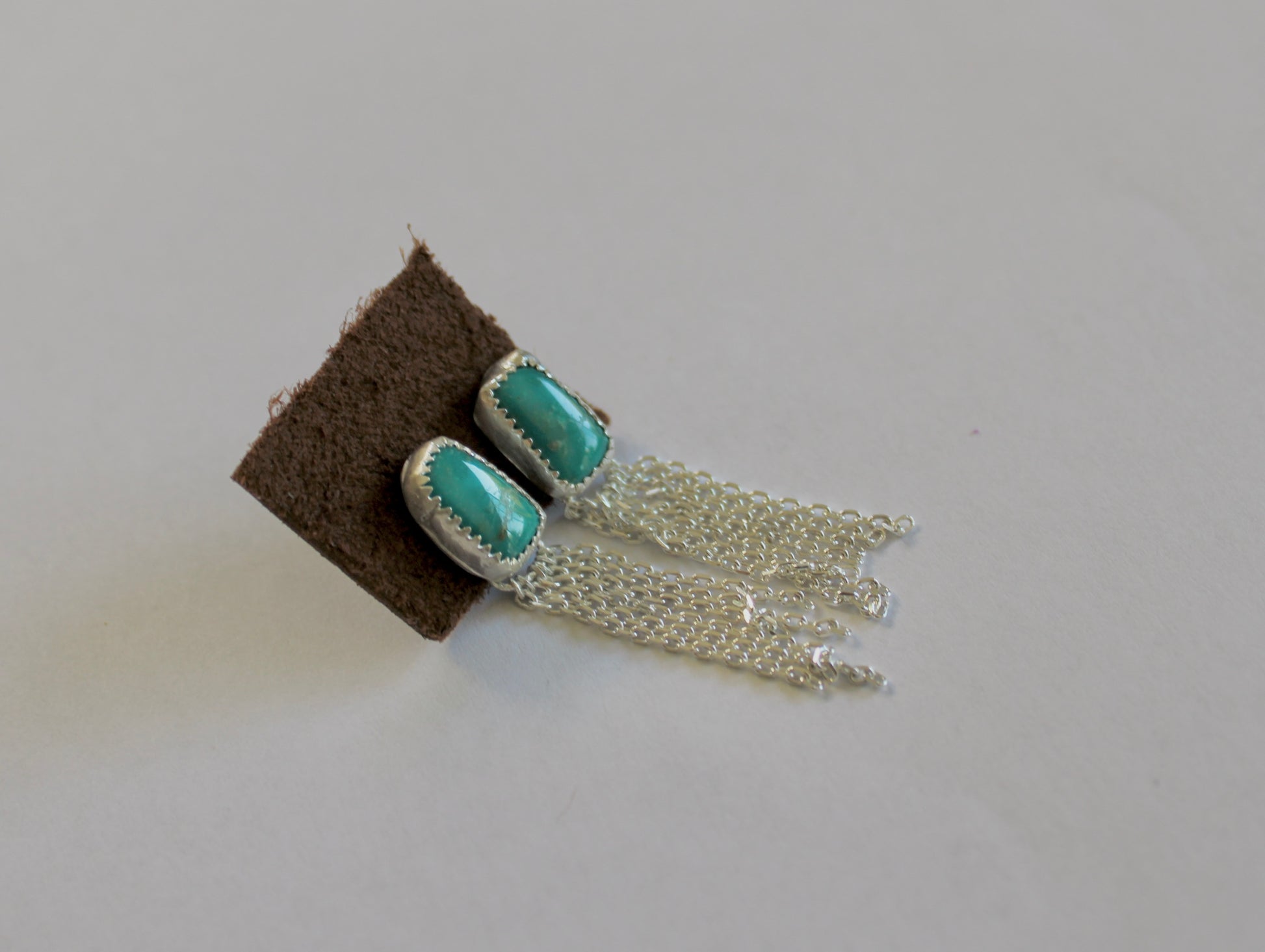 Sonoran Turquoise fringe duster studs. These hang 1 inch long all set in Sterling Silver with Sterling cable chain fringe.
