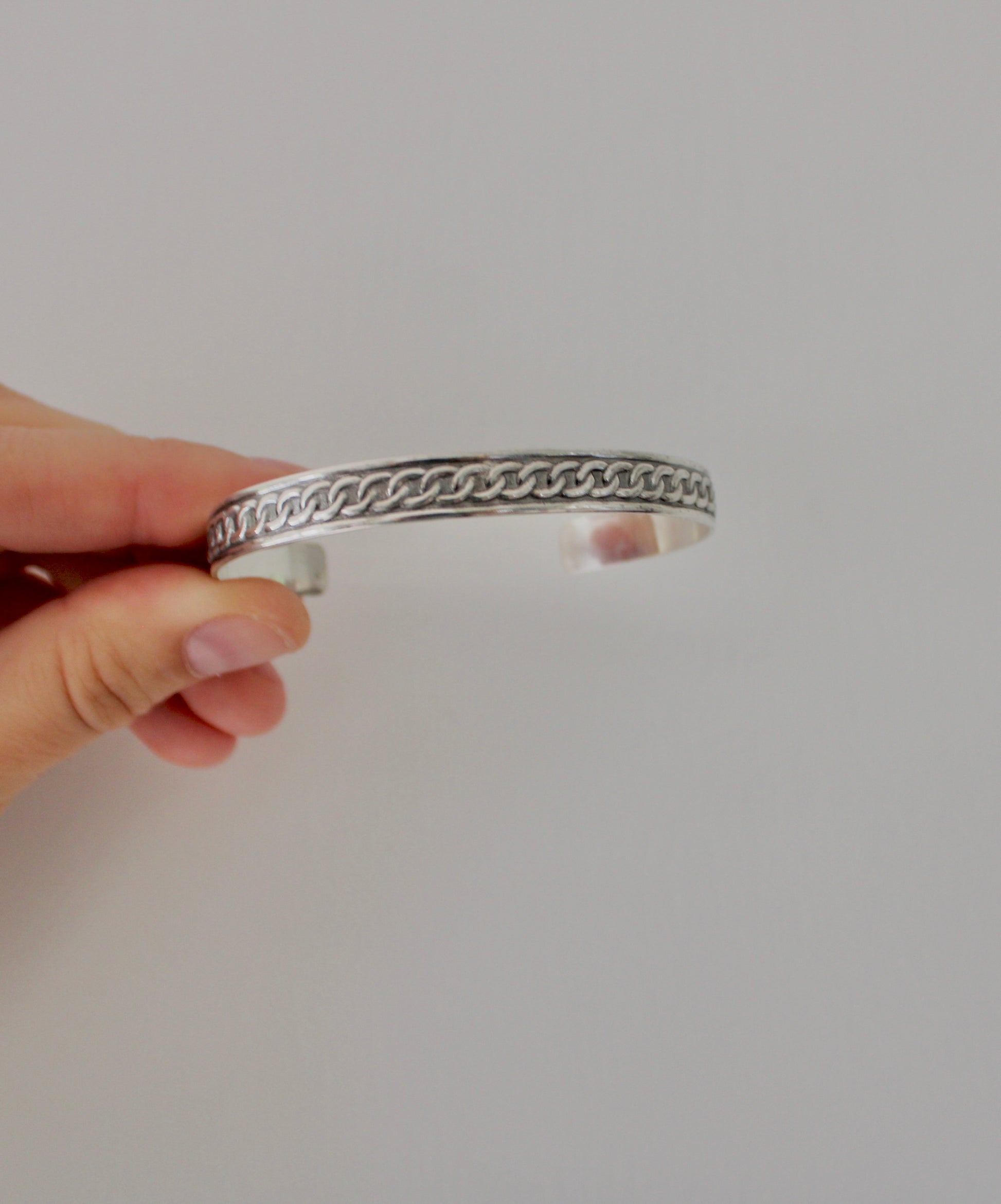 Sterling Silver patterned cuff, 6 inches with 1 inch gap. This is a larger cuff, somewhat adjustable as silver is soft and flexible.