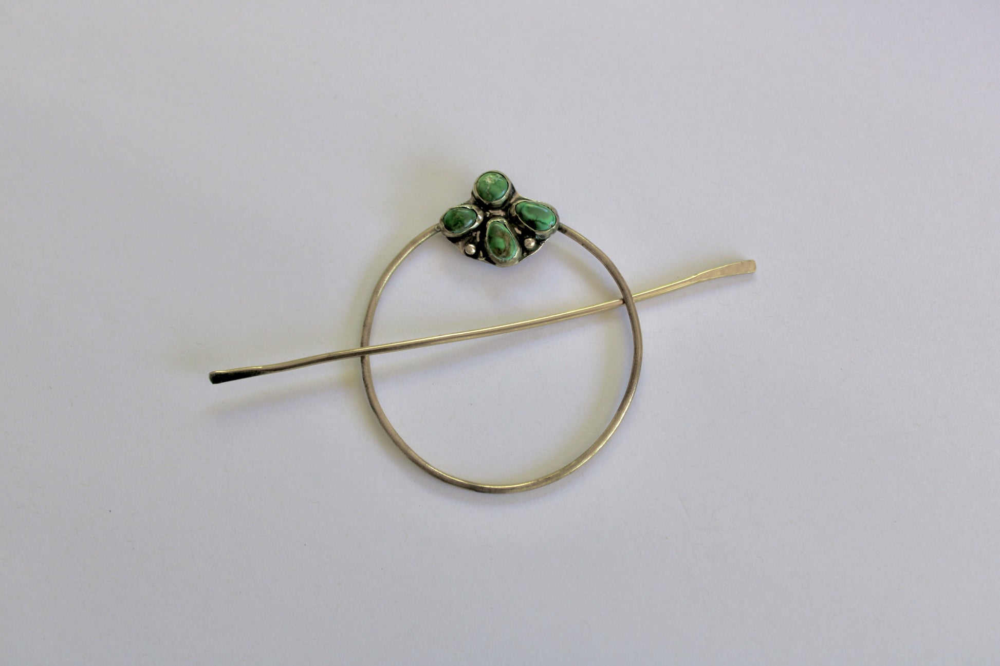 Sonoran Gold Turquoise hair pin made from jewelry brass. This piece is entirely handmade. Comes with a 6 inch pin for hair piece.