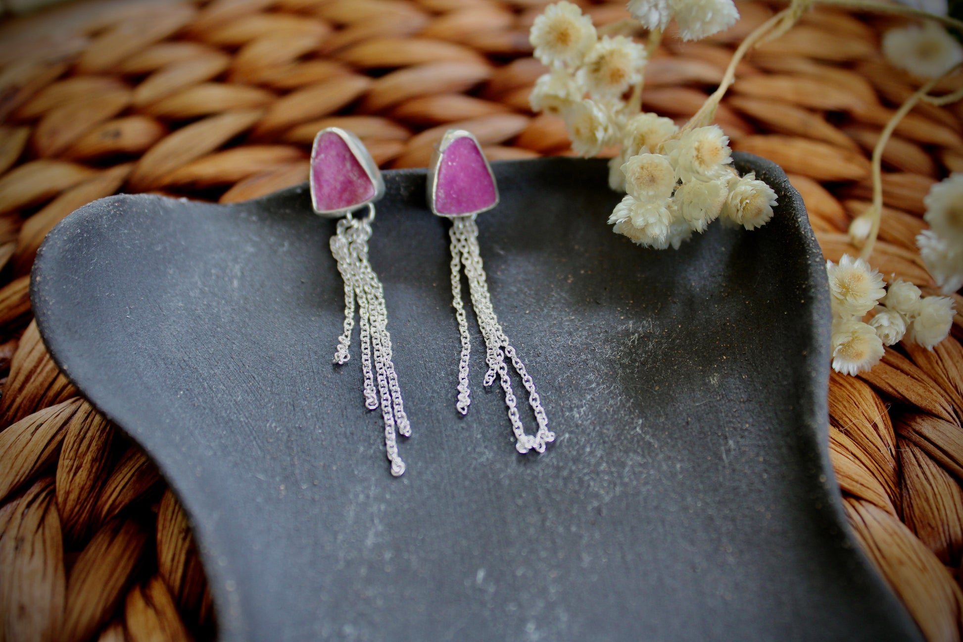 Druzy Agate Earrings set in Sterling Silver. Ear studs also Sterling Silver with Sterling Silver chain accent.