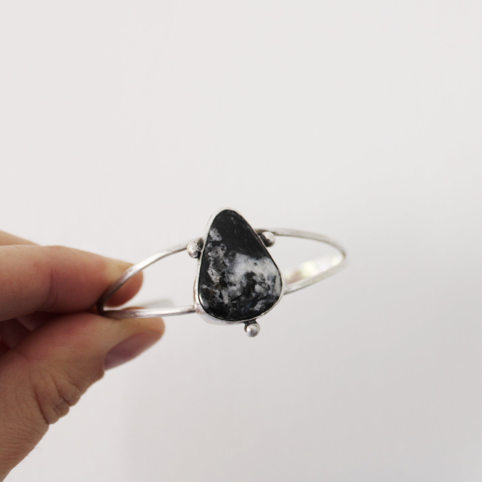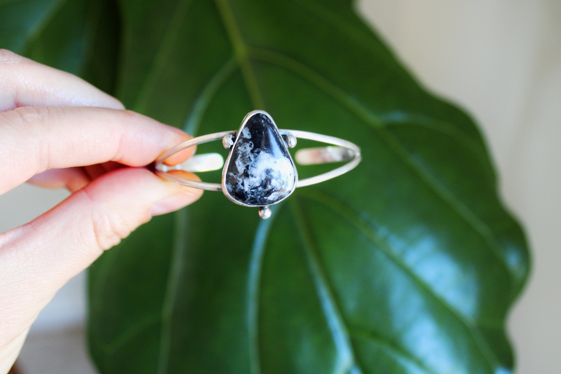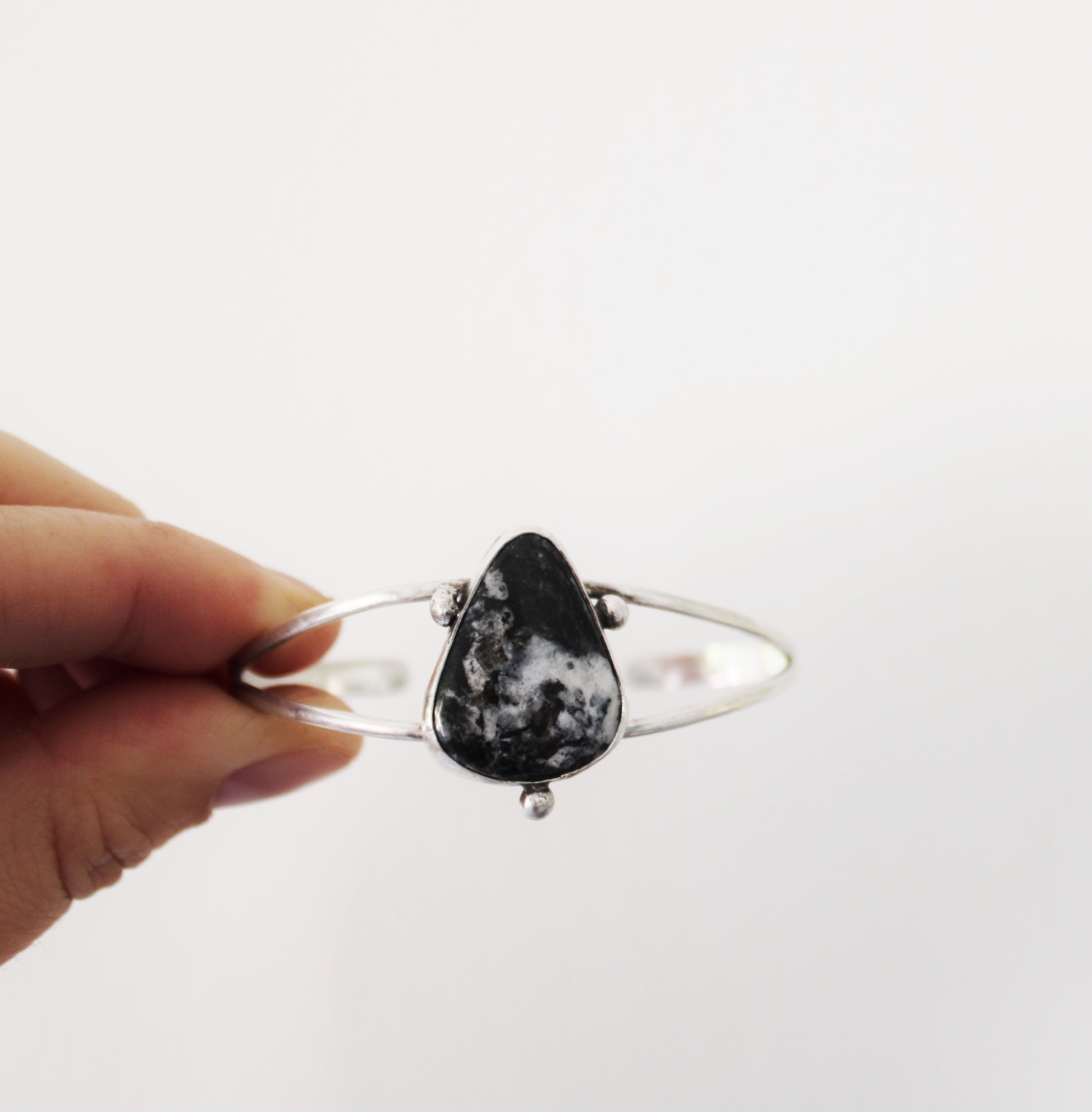 White Buffalo Turquoise Cuff set in Sterling Silver on a Sterling double cuff.