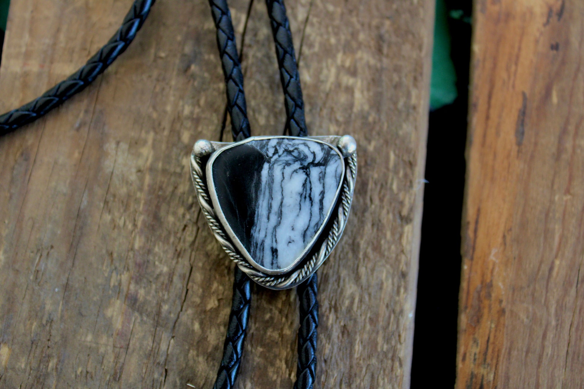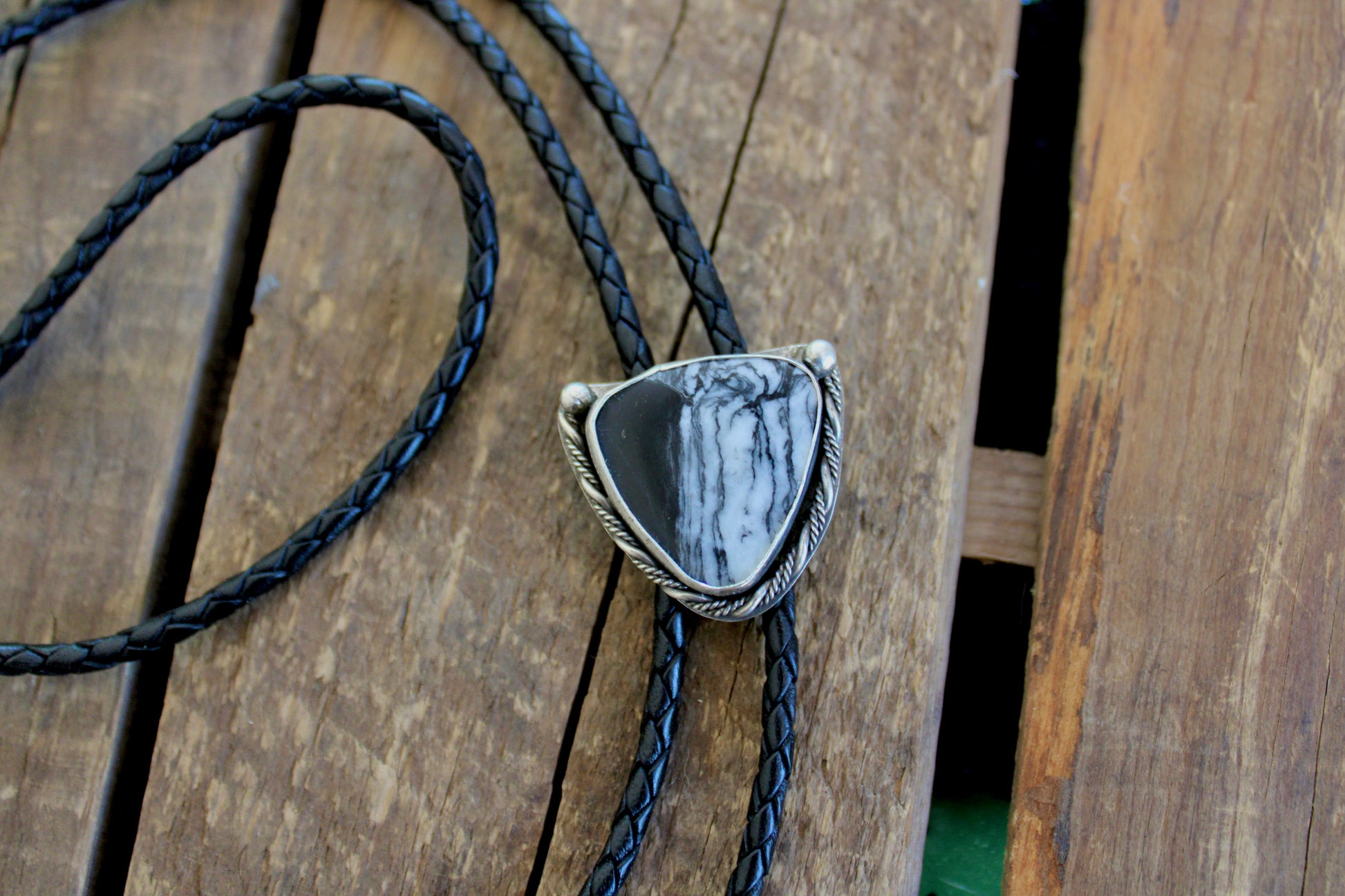 White Buffalo Turquoise Bolo Tie. Adjustable by bolo, made from Sterling Silver. Bolo cord is 4MM and 42inches, black bolo cord. Bolo slider made from steel.